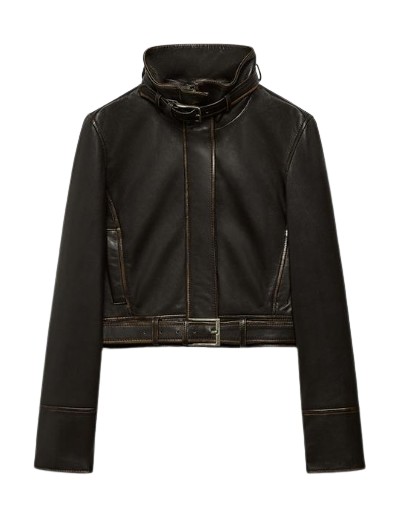 바디콘 아웃핏을 확실히 드러내려면 무엇보다 실루엣에 중점을 둬야 합니다. 이때 보디라인 중 가장 잘록한 부분인 허리를 드러낸다면 상대적으로 훌륭한 비율을 어필할 수 있을 뿐 아니라 다소 답답해 보일 수 있는 가죽 특유의 텁텁함을 덜어낼 수 있죠.