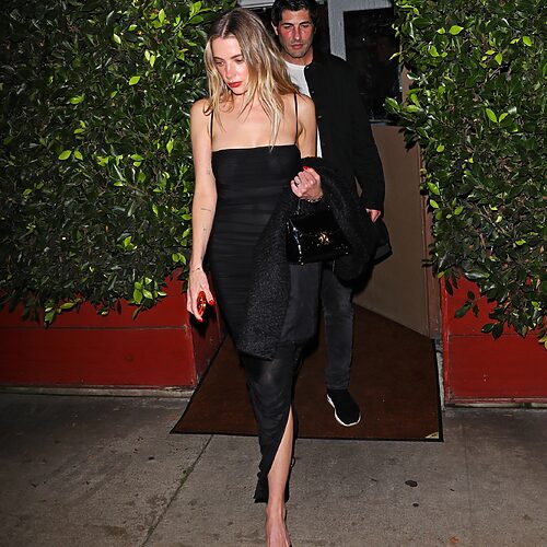 옷을 입는 방식만으로도 은근한 커플 패션을 연출할 수도 있어요. 깔끔하고 럭셔리한 무드의 포멀한 슈트와 드레스를 입은 이들은 어깨에 걸친 블랙 코트가 우아하고도 세련된 커플 무드를 완성했어요. 클래식한 슈즈와 백으로 고급스럽고 성숙한 분위기를 냈답니다.