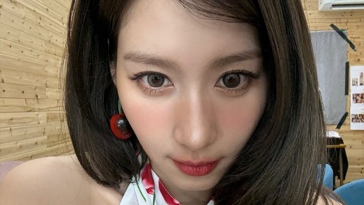 체리빛으로 물든 트와이스 사나! 체리 패턴의 톱과 이어링으로 ‘체리 걸’로 완벽하게 변신한 그는 붉은 립스틱과 블러셔를 활용했습니다. 콧잔등을 타고 이어진 블러셔는 탁기 없이 선명한 컬러로 맑은 분위기를 냈어요. 또, 그의 메이크업은 의외로 매트한 것이 특징. 진한 컬러를 과해보이지 않게 만든 사나의 똑똑한 방법이네요.