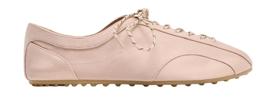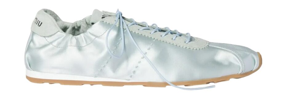 발레 슈즈는 너무 가볍고, 스니커즈는 너무 캐주얼하게 느껴졌다면 그 중간 어디쯤의 슬림하고 여성스러운 디테일이 가미된 슬림 스니커즈가 대안이 될 거예요. 부드러운 레더, 새틴 소재의 미우미우와 프라다에서 선보인 스니커즈가 대표적입니다. 레이스 업 디테일로 발레 슈즈 못지 않은 소프트함이 느껴지는 스니커즈에 드리스 반 노튼은 주얼 장식을 더하기도 했어요.