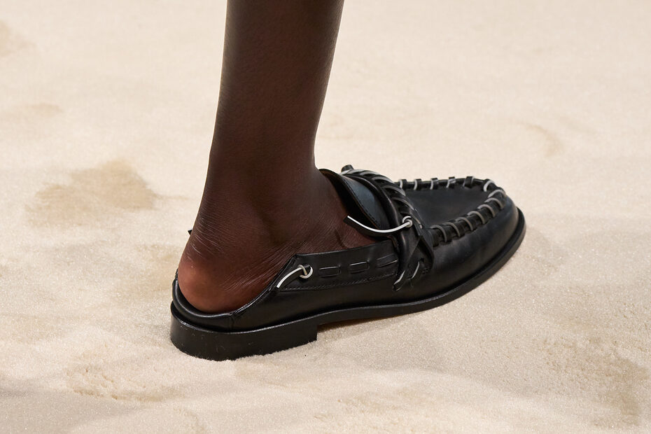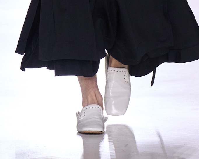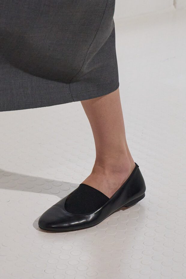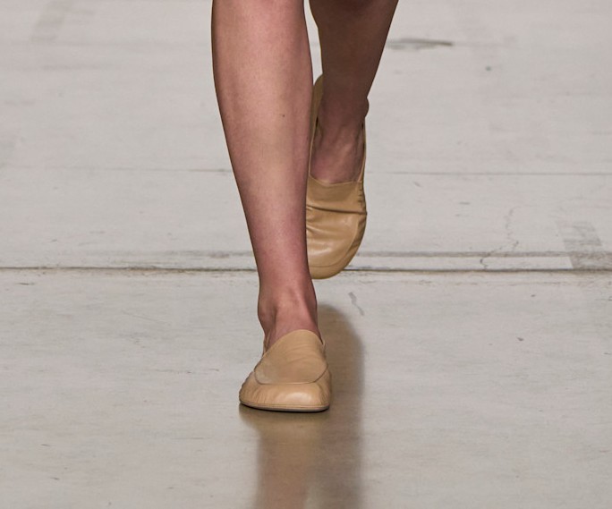 로퍼와 발레 슈즈의 그 중간쯤, 심플하고 모던함이 매력이 슬립 온 슈즈를 주목하세요. 보기에도 편해 보이는 디테일을 최대한 자제한 플랫 슈즈는 켈빈 클라인, 질 샌더 등의 미니멀리즘을 대표하는 런웨이에 빠져선 안 될 필수 아이템이기도 합니다. 이번 시즌엔 전형적인 매니시한 로퍼 스타일이 아닌 좀 더 부드럽고 둥근 형태의 발을 감싸는 디자인의 슬립 온이 주를 이뤘어요.