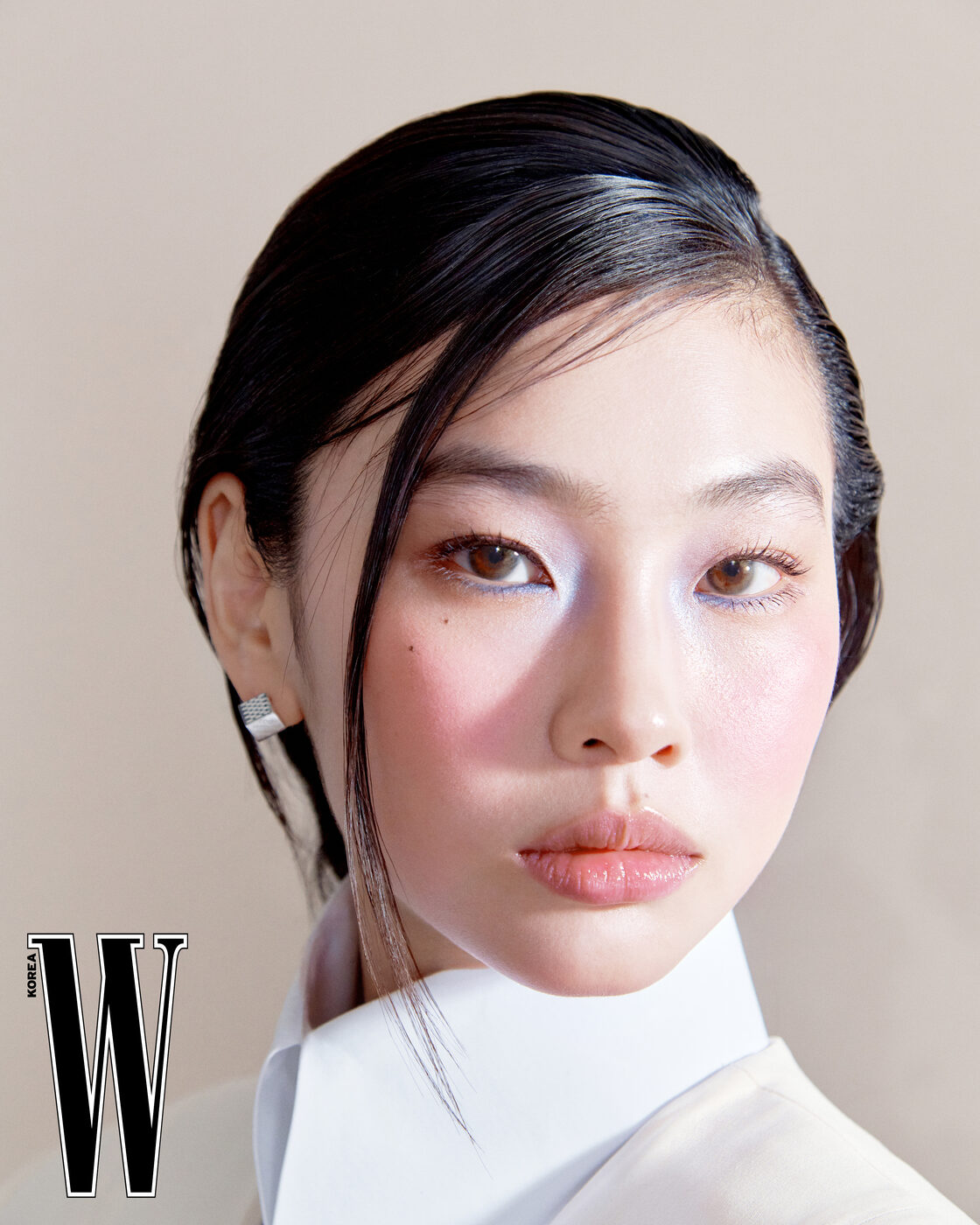 그러니까 <오징어 게임>이라는 강력한 임팩트 위에 켜켜이 쌓인 정호연의 노력이 세상에 드러나기까지, 시간이 좀 걸리는 것뿐이다. 그것들이 결과물로 무르익는 사이사이, 정호연은 루이 비통 런웨이의 오프닝을 장식하곤 했다. 새로운 세상을 알아가는 아이의 상기된 얼굴처럼, ‘이렇게 재밌어도 되나 싶을 정도로 연기가 재밌다’고 씩씩하게 외치는 정호연의 모습은 한껏 부풀어 오르는 것 같았다. 그것은 틀림없이 ‘사랑’이다. 온몸의 세포가 반응하고, 그쪽을 향해 감각이 한없이 예민해지며, 기꺼이 흡수할 준비가 된 자의 마음. 여전히 첫 테이크 때면 손을 벌벌 떤다지만, 정호연은 몇 년째 연기를 둘러싼 모든 것에 푹 빠진 상태다.