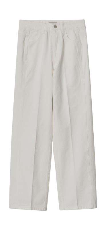 블랙 진보다 한 끗 더 신경 쓴 인상을 주는 화이트 진은 캐주얼과 드레시한 무드를 유연하게 오가는 아이템입니다. 빛을 반사하는 컬러 특성 덕분에 무채색 아이템들과 매치해도 룩이 답답해 보이지 않죠. 화이트와 블랙, 단 두 가지 컬러만으로도 도회적이고 시크한 분위기를 손쉽게 완성할 수 있고요. 룩이 밋밋해 보이지 않도록 큼직한 안경이나 벨트처럼 존재감 있는 액세서리를 더해보는 것도 좋겠고요.