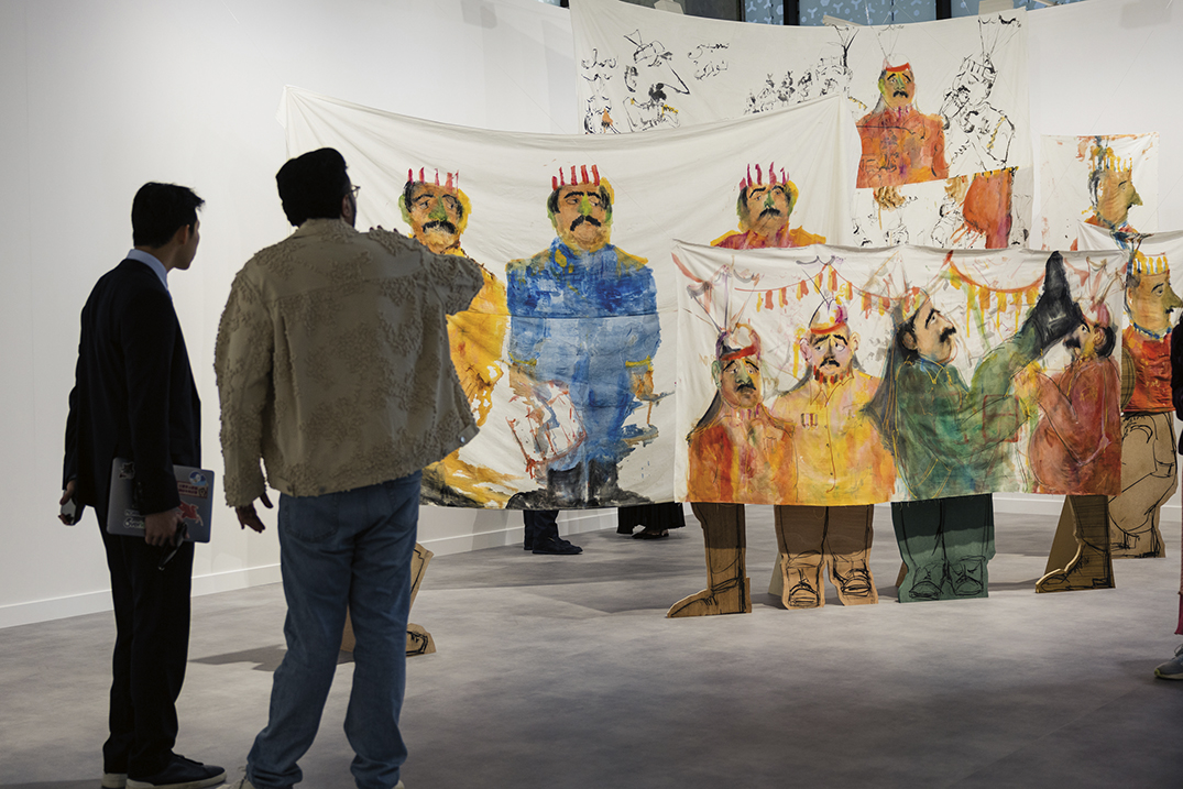 “확실히 첫 에디션이라 그런지 힘을 준 게 느껴집니다. 주최 측에서 거의 모든 참여 작가들에게 왕복 항공권과 5성급 호텔 숙박을 지원했거든요. 오일 머니의 저력을 실감하는 중이에요.” 카타르 왕실의 비공개 투어가 한 차례 휩쓸고 지나간 2월 3일, 아트바젤 카타르의 공식 VIP 프리뷰 데이에서 만난 한 갤러리스트는 말했다. 이번 페어에 이름을 올린 딜러는 31개국 87개 갤러리다. 통상적인 아트바젤 규모의 3분의 1 수준이지만, 내실은 자본의 화력으로 촘촘히 메워졌다. 특히 카타르 정부의 전폭적인 지원은 참가 갤러리들의 비용 부담을 획기적으로 낮춰주었다. 부스 면적에 따라 가혹한 비용을 책정하는 기존 아트페어의 관성에서 벗어나, 구체적인 액수는 베일에 가려져 있으나 파격적인 조건으로 진입 장벽을 허문 것이다. 갤러리 입장에서는 운송과 체류, 인건비 등 부대 비용에 따른 부담을 상당부분 덜어낸 셈이다.