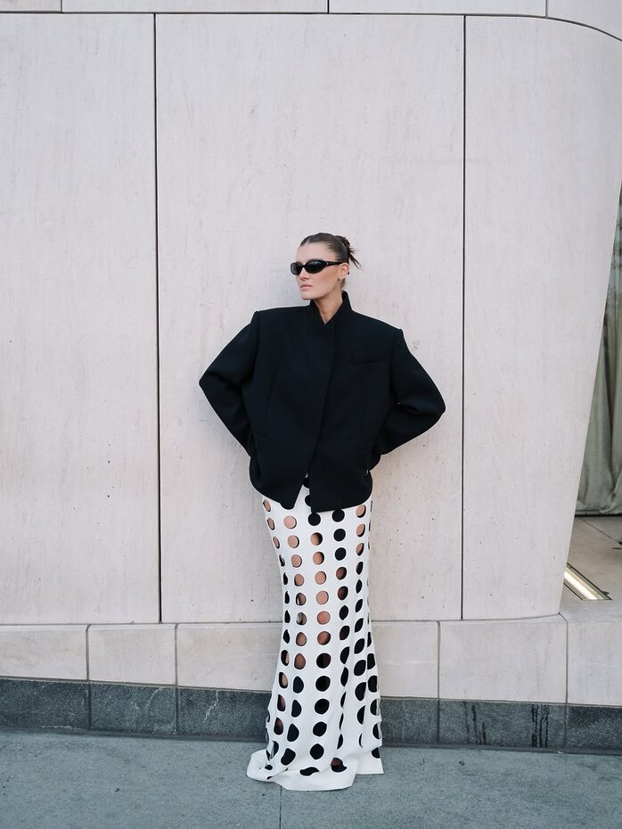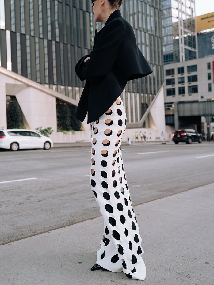 더 확실하고 강력한 포인트를 원하는 이들에게는 ‘드라마틱’을 기억해야 할 키워드로 추천합니다. 무척 짧거나 바닥에 끌릴 만큼 긴 길이, 부푼 듯하거나 몸에 밀착된 실루엣, 시선을 이끄는 화려한 장식 등 과해 보일 정도로 독특한 디자인 요소에 집중해 포인트 역할을 할 스커트를 선택하는 거예요. 자신감 넘치는 태도와 드라마틱 스커트 하나만 있다면 누구나 충분히 돋보이는 주인공이 될 수 있답니다.