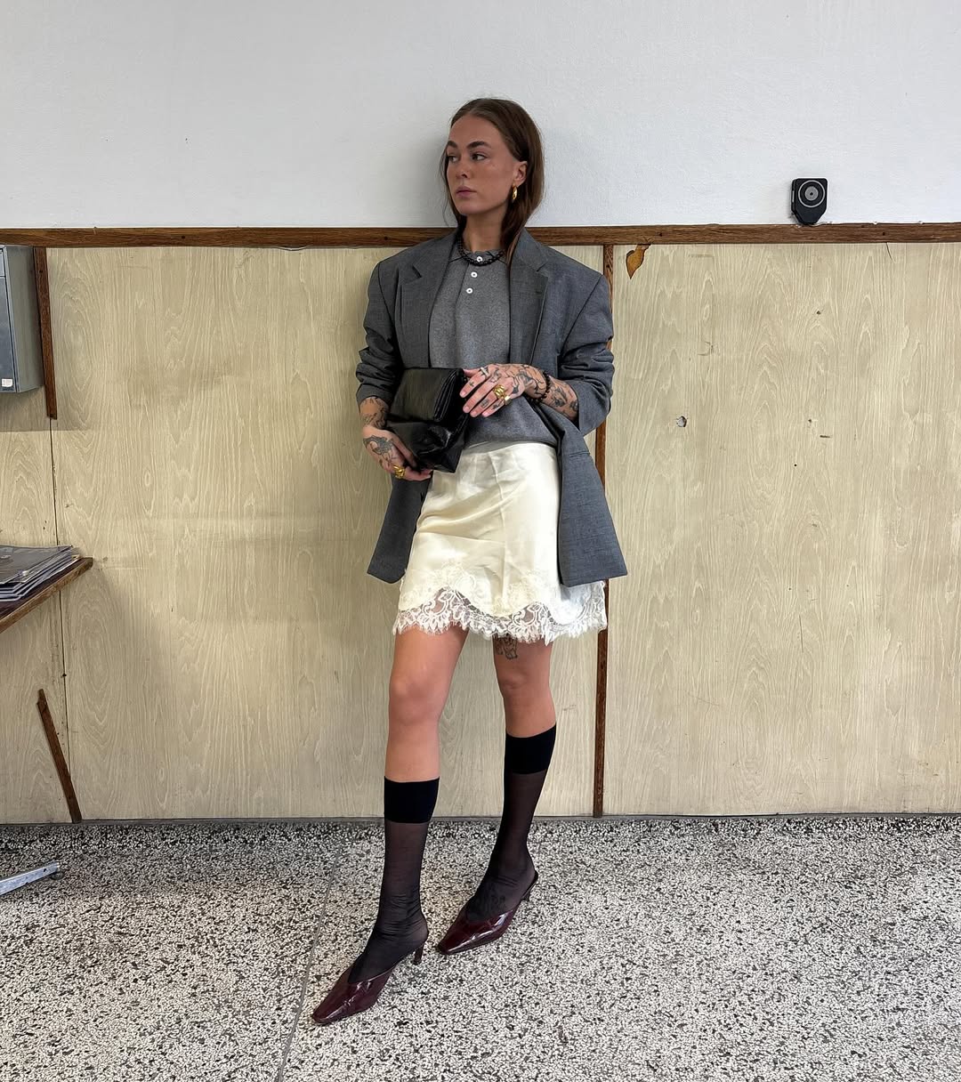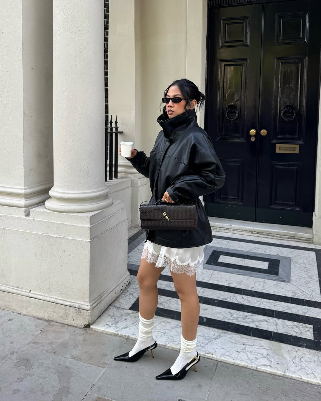 살랑거리는 봄바람을 제대로 느끼려면 치맛자락은 가벼울수록 좋습니다. 예를 들어 최근 유행하는 레이스 장식의 부드러운 실크 또는 새틴 스커트처럼요. 언뜻 란제리 같은 모습에 지나치게 부담스러워 보이지 않기 위해서는 클래식한 블레이저, 시크한 레더 재킷을 살짝 걸쳐 룩 전체의 균형을 조절하세요. 과유불급의 이치를 잊지 않는 것이 중요합니다.