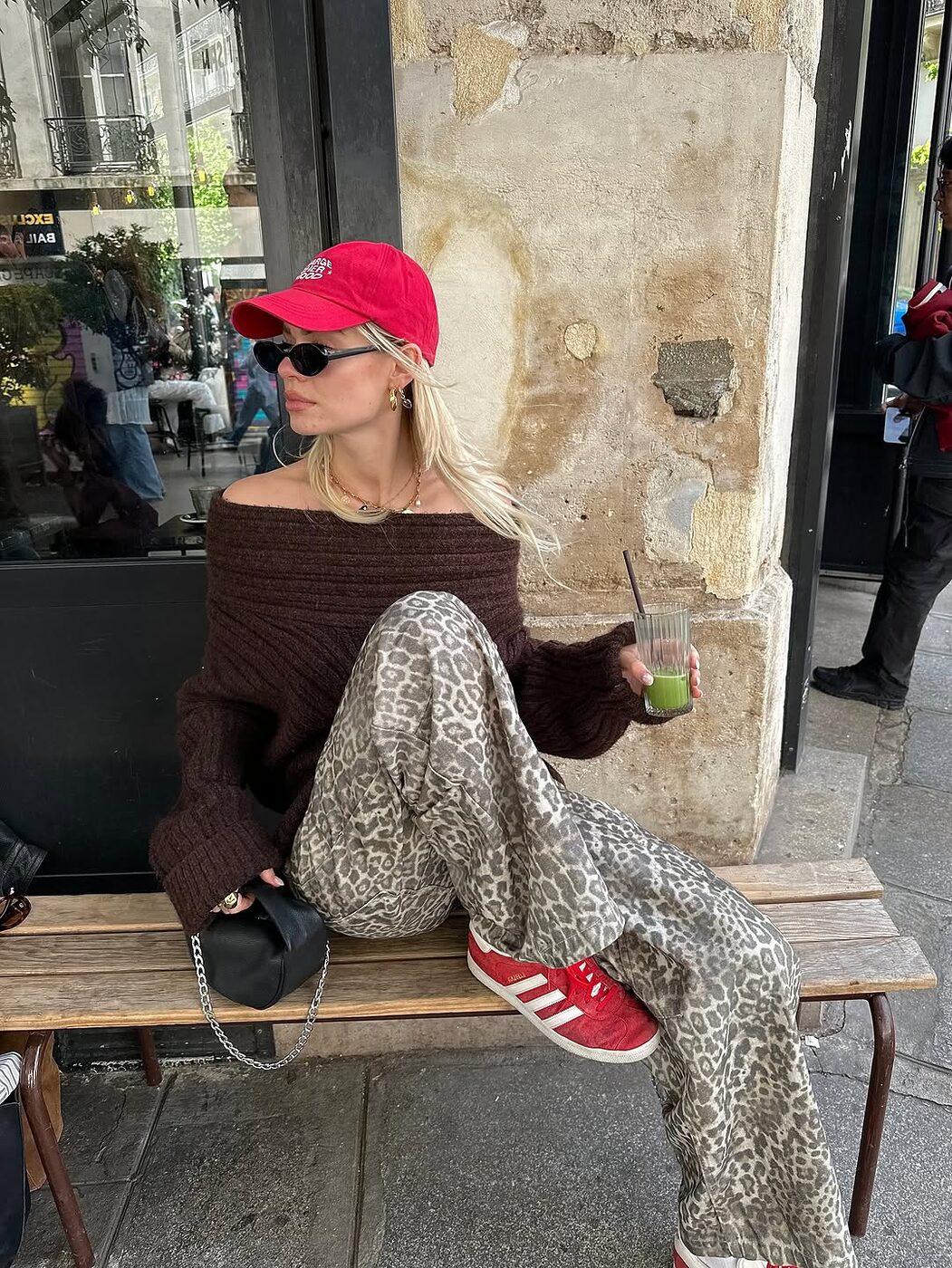 아직 완연한 봄이라 부르기엔 이른 시기, 청키한 오버사이즈 오프숄더 니트로 시작해보는 것도 좋은 선택이 되겠습니다. 어깨를 자연스럽게 드러내니 니트 특유의 포근함 속에서도 답답함은 덜어낼 수 있죠. 인플루언서 린다는 레오파드 팬츠를 매치해 캐주얼한 룩을 선보였군요. 여기에 레드 볼캡과 스니커즈로 컬러 포인트를 더했고요. 어깨 라인이 시원하게 드러난 만큼 액세서리 활용도 중요합니다. 네크리스를 레이어드해 존재감을 살리거나, 길이감 있는 디자인으로 과감하게 연출해도 좋겠어요.