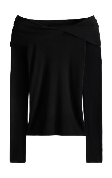 오프숄더 톱을 출근 룩으로 활용하고 싶다면 셔츠와 함께 레이어드 해보세요. 깨끗한 화이트 셔츠 위에 블랙 오프숄더 톱을 더하니 노출이 절제되고 정제된 분위기가 연출됩니다. 새틴 미디 스커트와 볼드한 벨트와 클러치로 모던한 오피스 룩을 완성했군요. 중요한 미팅이 있는 날에도 충분히 활용할 수 있는 조합이죠. 이때 몸에 자연스럽게 밀착되는 핏의 셔츠를 골라 오프숄더와 매끄럽게 이어지도록 연출하는 것도 중요한 포인트.