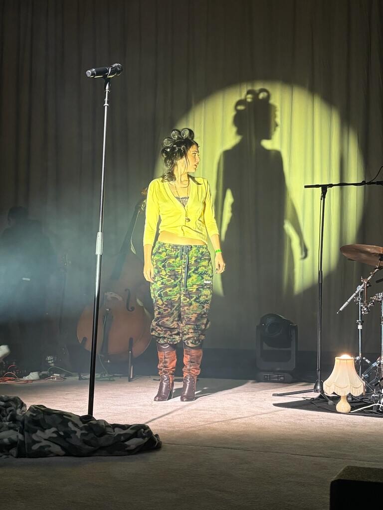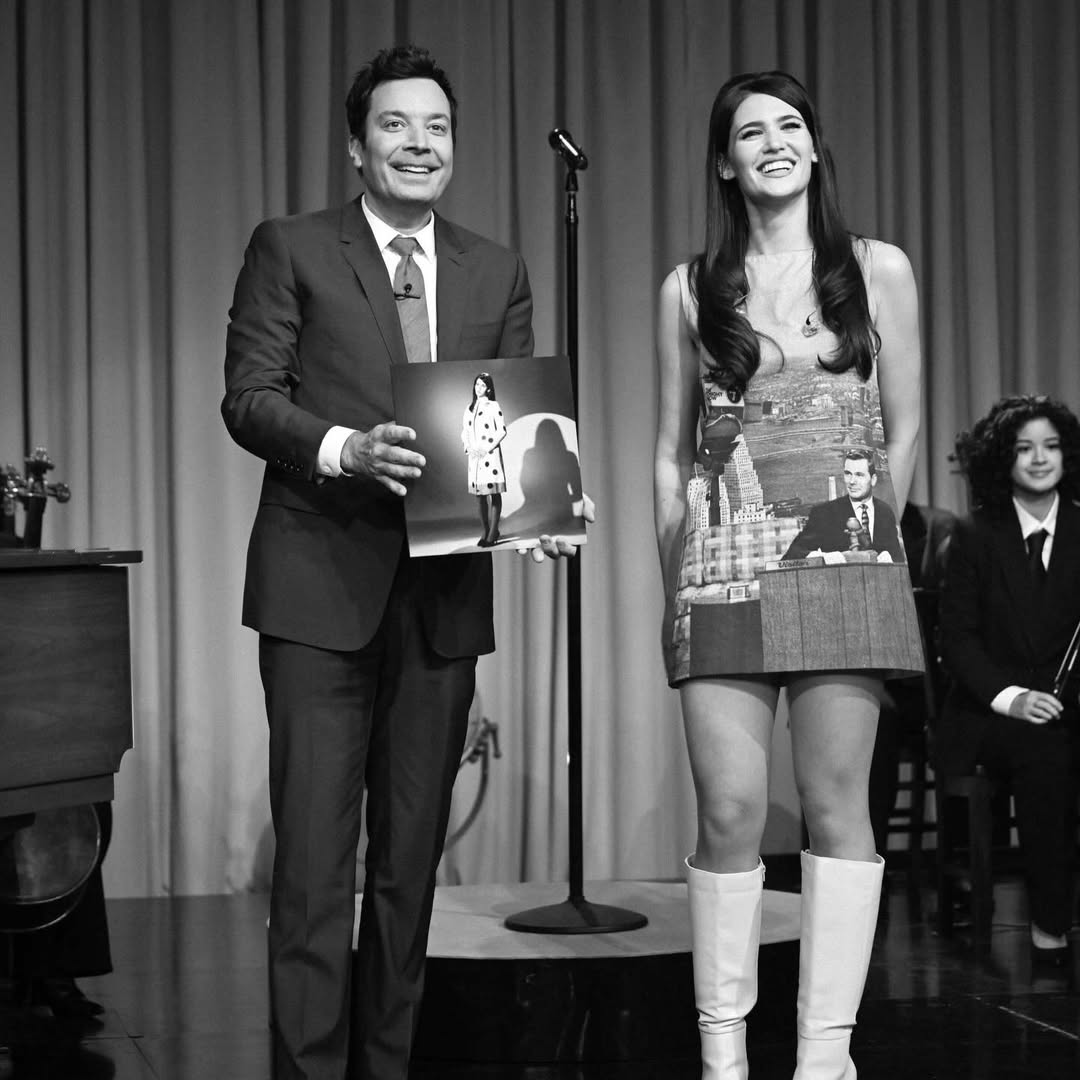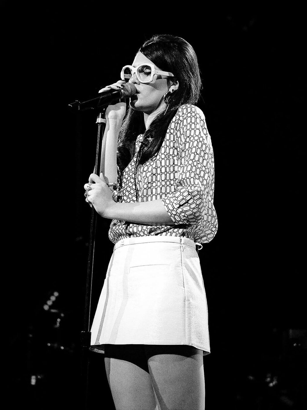1960년대로 돌아간 시에나 스파이로의 무대 의상 콘셉트는 그녀가 나고 자란 영국의 배경에서 영감을 받았습니다. 시프트 원피스, H라인 미니스커트와 버튼 업 재킷 그리고 코트 드레스 등의 단정한 실루엣에 대비되는 선명한 컬러와 기하학적 패턴으로 당시 영국 스트리트에서 유행하던 모즈 룩의 특징을 고스란히 드러내죠. 특히, 영국의 상징적인 록 밴드 비틀스와 토크쇼의 역사적인 진행자 자니 칼슨이 인쇄된 드레스가 인상적인데요. 역시나 60년대의 프린팅&페이퍼 드레스를 레퍼런스로 도트 패턴과 풍경을 더해 팝아트적인 감성과 함께 현대적으로 풀어냈죠. 여기에 컬러 프레임의 오버사이즈 선글라스, 니 삭스에 메리제인이나 흰 가죽의 고고 부츠까지 말그대로 복고풍 의상을 완벽 소화했습니다.