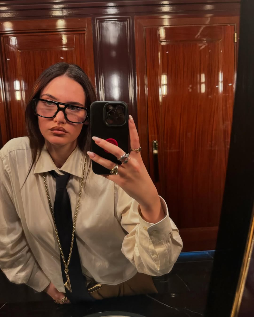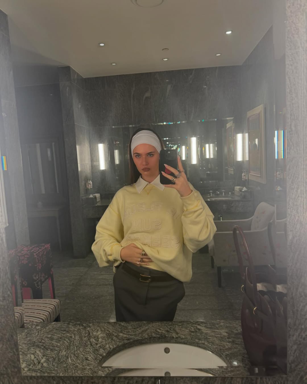 이후 스타일에도 약간의 변화가 찾아왔는데요. 여전히 카라가 달린 아우터에 일자로 떨어지는 스커트 룩의 셋업을 즐기지만 전보다 슬림해진 실루엣으로 정돈되었죠. 또한 스케줄이 없는 날에도 얼굴을 반쯤 가려주는 큰 틴티드 선글라스와 볼륨감 있는 헤어를 유지하며 빈티지한 매력에 푹 빠져있습니다.