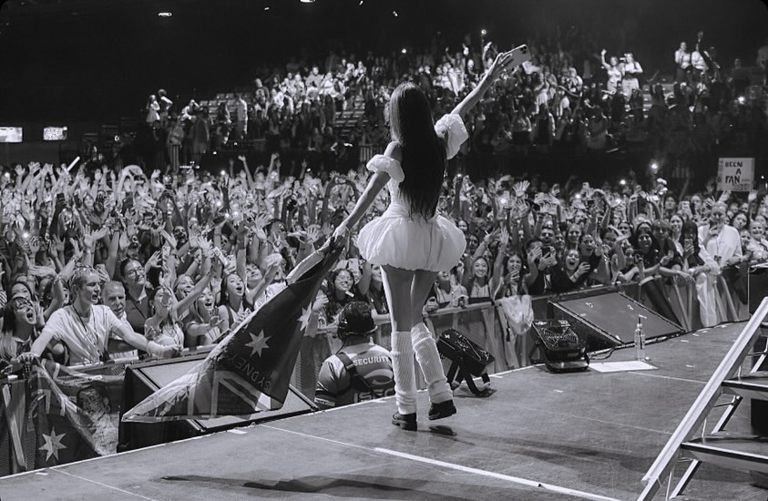 그녀의 스타일이 확고해진 건 2024년 발표한 <Make You Mine> 무대 이후입니다. 메디슨 비어는 발레 코어 룩을 시그니처로 굳히며 요정 같은 무대 위 이미지를 선명하게 완성했죠. 이 변화는 객석의 풍경까지 바꿔 놓았습니다. 콘서트장을 찾은 팬들 역시 커다란 리본 핀과 베이비돌 스타일의 원피스나 티어드 스커트로 그녀를 오마주 하기 시작했죠. 이제 팬들 사이에서는 메디슨 비어 스타일로 차려입고 공연을 찾는 것이 일종의 드레스 코드이자 문화로 자리 잡았습니다.