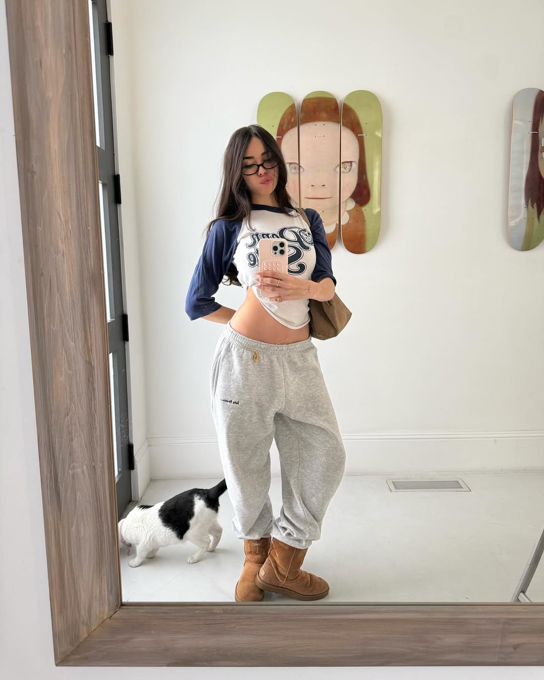 의외로 편한 차림의 모습도 자주 볼 수 있는데요. 무대 전 사운드 체크를 할 때나 곡 작업에 몰두할 때 혹은 투어를 위해 비행기를 오를 때면 스웻 셔츠나 조거 팬츠 같은 이지 웨어를 즐겨 입습니다. 헤어스타일 역시 자연스럽습니다. 양 갈래로 묶거나 헤어클립으로 질끈 올려 묶어 내추럴한 분위기를 살리죠. 여기에 선글라스나 너디한 안경을 더해 민낯을 커버하면서도 특유의 담백한 매력을 드러냅니다. 특히 넉넉한 핏의 조거 팬츠를 어그에 넣어 연출하는 방식이 눈에 띄는데요. 편안함을 기본으로 하되 실루엣의 균형과 자신만의 스타일링 한 끗을 놓치지 않죠. 이런 이지 웨어를 입을 때에도 그녀만의 감각은 여전히 유효합니다.