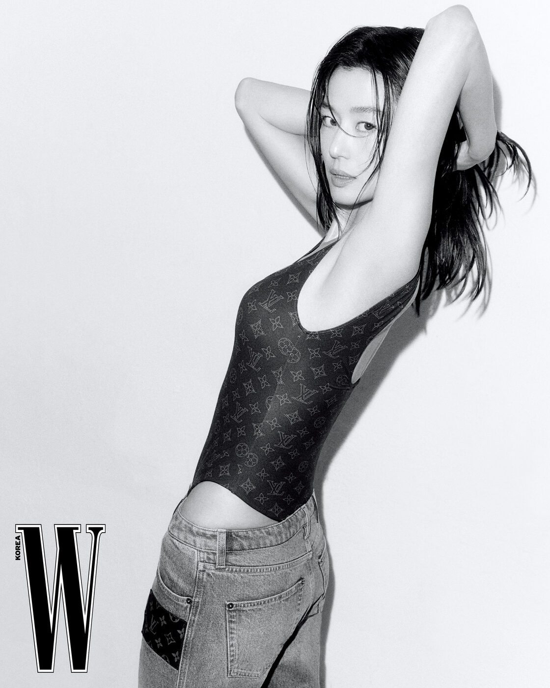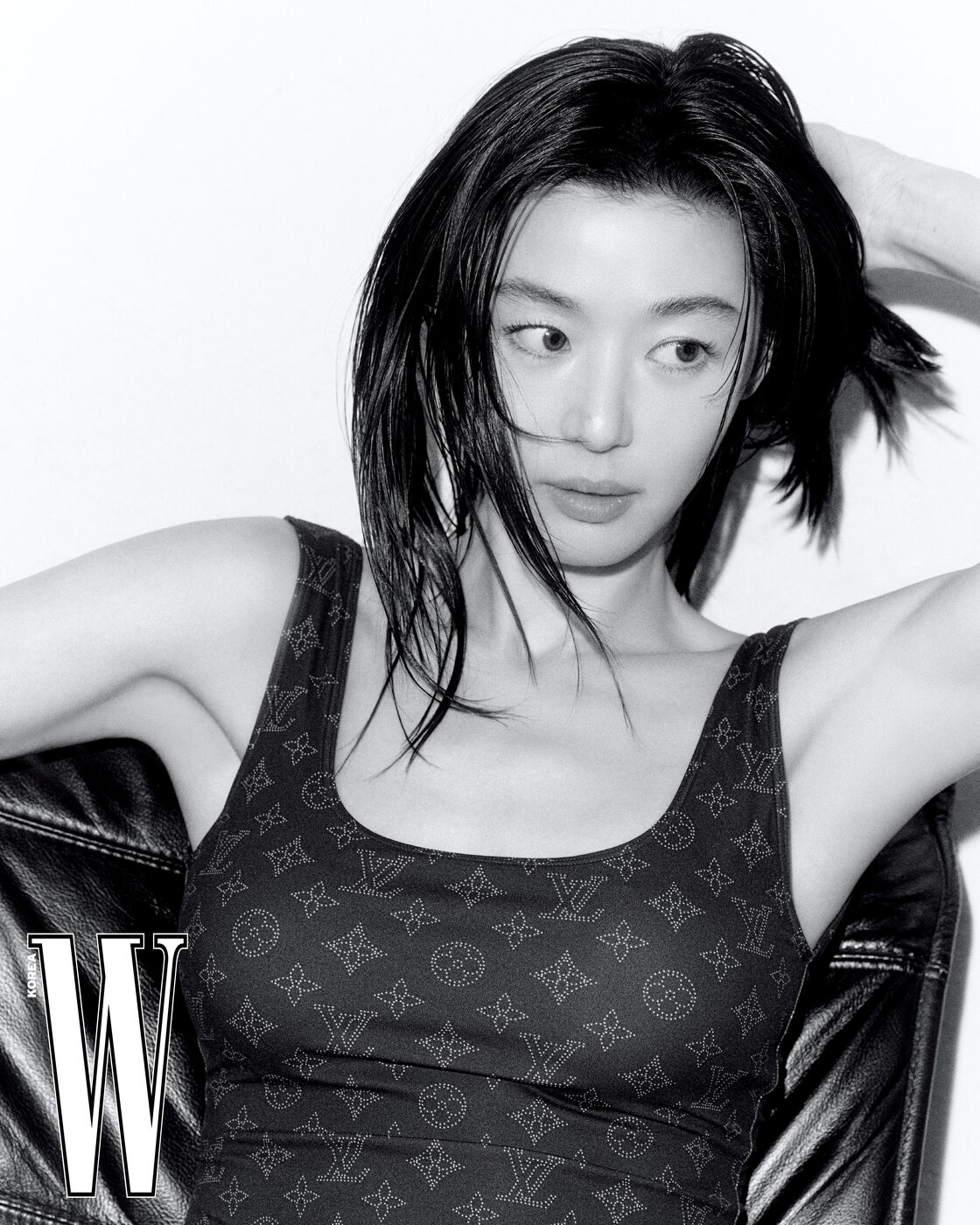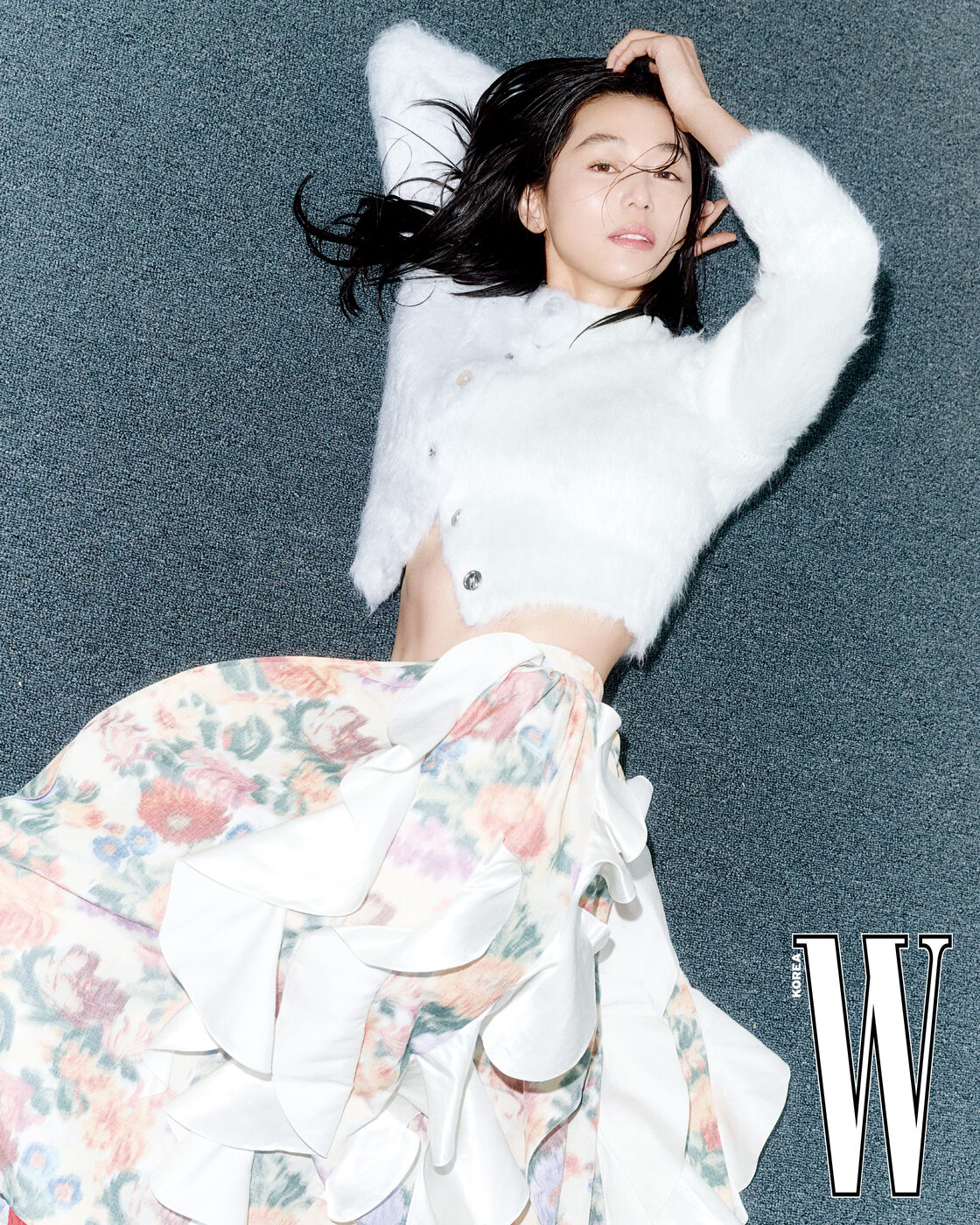전지현은 ‘K-좀비’에 좀 진심이다. <킹덤: 아신전> 촬영 후 인터뷰 때 ‘좀비 배우님들을 직접 봐서 너무 신기하고 좋았다’고 고백하더니, 영화 <군체> 현장에서는 그 팬심을 좀 더 표현했나 보다. 5월 개봉하는 영화 <군체>는 고립된 생존자들이 예측할 수 없는 형태로 진화하는 감염자들에 맞서는 이야기다. 구교환, 지창욱, 신현빈, 김신록, 특별출연으로 고수 배우가 출연하는 가운데, 전지현은 생물학 교수이자 전략가적 면모를 가진 주역으로 극을 이끌어간다. <군체>에서는 감염자들을 피해 도망가고 쫓기는 전지현이 드라마 <인간 X 구미호>(가제)에서는 구미호로 등장한다. 오래 기다렸다. 왜, 이제야 전지현이 구미호를 맡게 되었을까? <별에서 온 그대>의 천송이가 전지현의 자기 패러디였다면, 천년 이상 묵은 구미호야말로 전지현을 날아다니게 해줄 옷이다. 스스로를 ‘동물’이라고 표현한다는 전지현의 구미호가 지창욱과 어떤 식으로 케미스트리를 발산할지 궁금하다. <군체> 개봉을 앞두고, 드라마 촬영에 들어가기 직전의 전지현이 최상의 컨디션으로 <더블유> 와 만났다. 전지현이라는 건재하고 건강한 산봉우리의 현재를, 이렇게 다시 한번 목격한다.