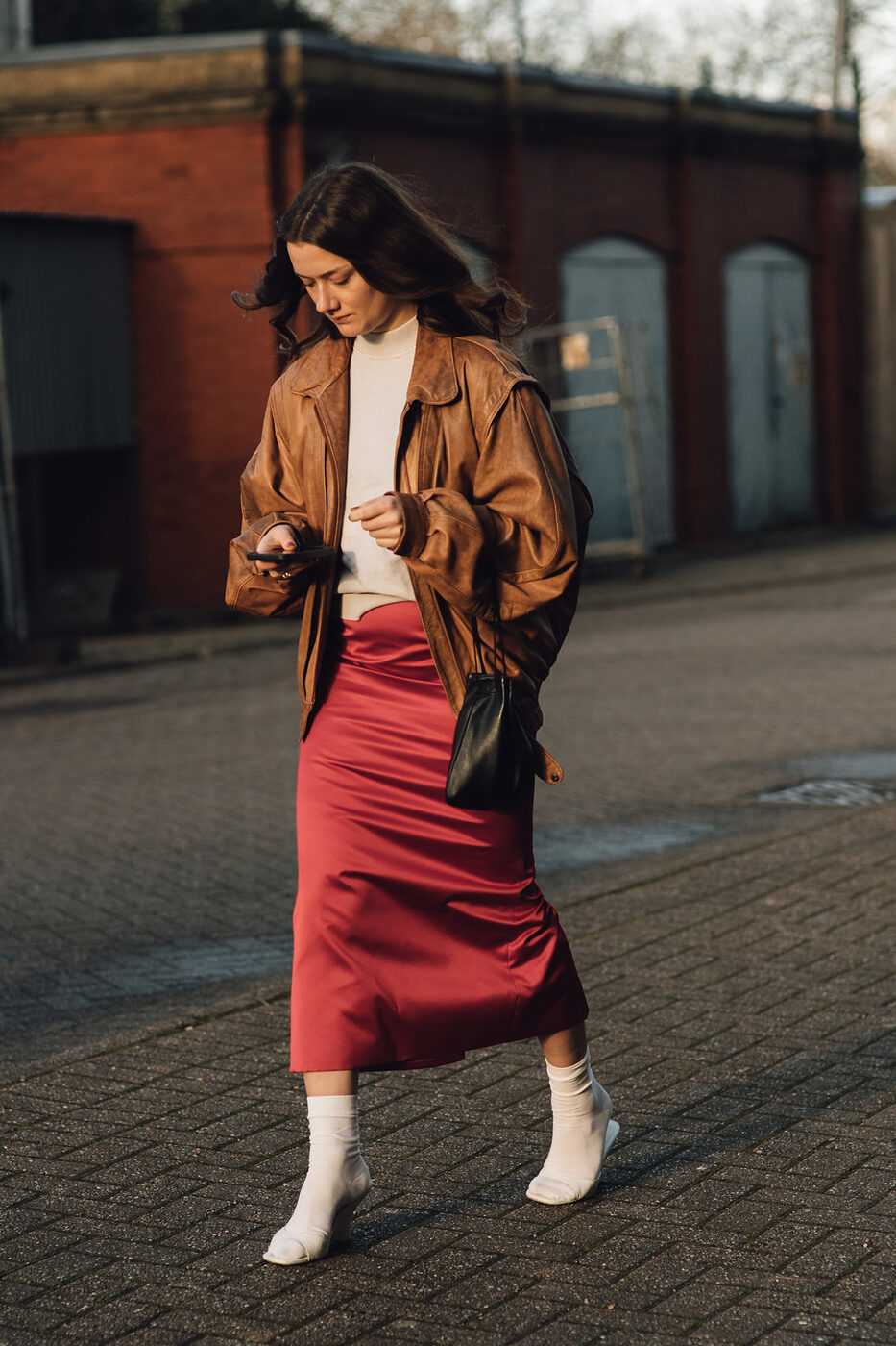 슬링백 혹은 샌들을 신기엔 다소 이른감이 있지만, 양말만 있다면 이 또한 가능합니다. 화이트 컬러의 짧은 발목 양말에 화이트 슈즈를 매칭해 복잡한 체크 패턴 룩이나 컬러풀한 스타일링을 쿨하게 소화했어요. 양말과 신발을 같은 컬러로 신을 것, 가장 안전하고 세련된 스타일을 선보일 수 있는 비법입니다.
