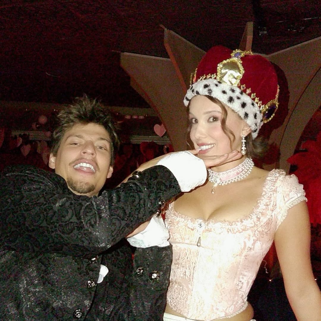 한편 밀리 바비 브라운의 생일 파티는 ‘Regal with a touch of sexy’로 드레스 코드가 정해져 있었는데요. 마리 앙투아네트와 넷플릭스 시리즈 ‘브리저튼’이 떠오르는 비주얼로 사진만 봐도 주제가 확실하게 설명됐죠. 밀리는 은은한 새틴 재질의 스쿱넥 코르셋 톱과 블루머 쇼츠에 드라마틱한 실루엣의 페티코트 스커트를 둘러 한껏 드레스 업했습니다. 메이크업 역시 화이트 파우더를 덮은 창백한 페이스, 핑크 블러셔에 빨간 립을 바르고 백발 가발까지 써주었는데요. 관능적인 터치를 더해 18세기 로코코 감성을 완벽 재현해 내며 테마에 충실한 주인공의 모습이었죠.