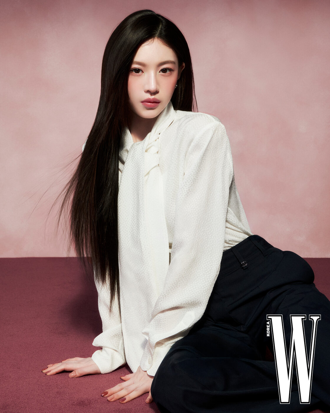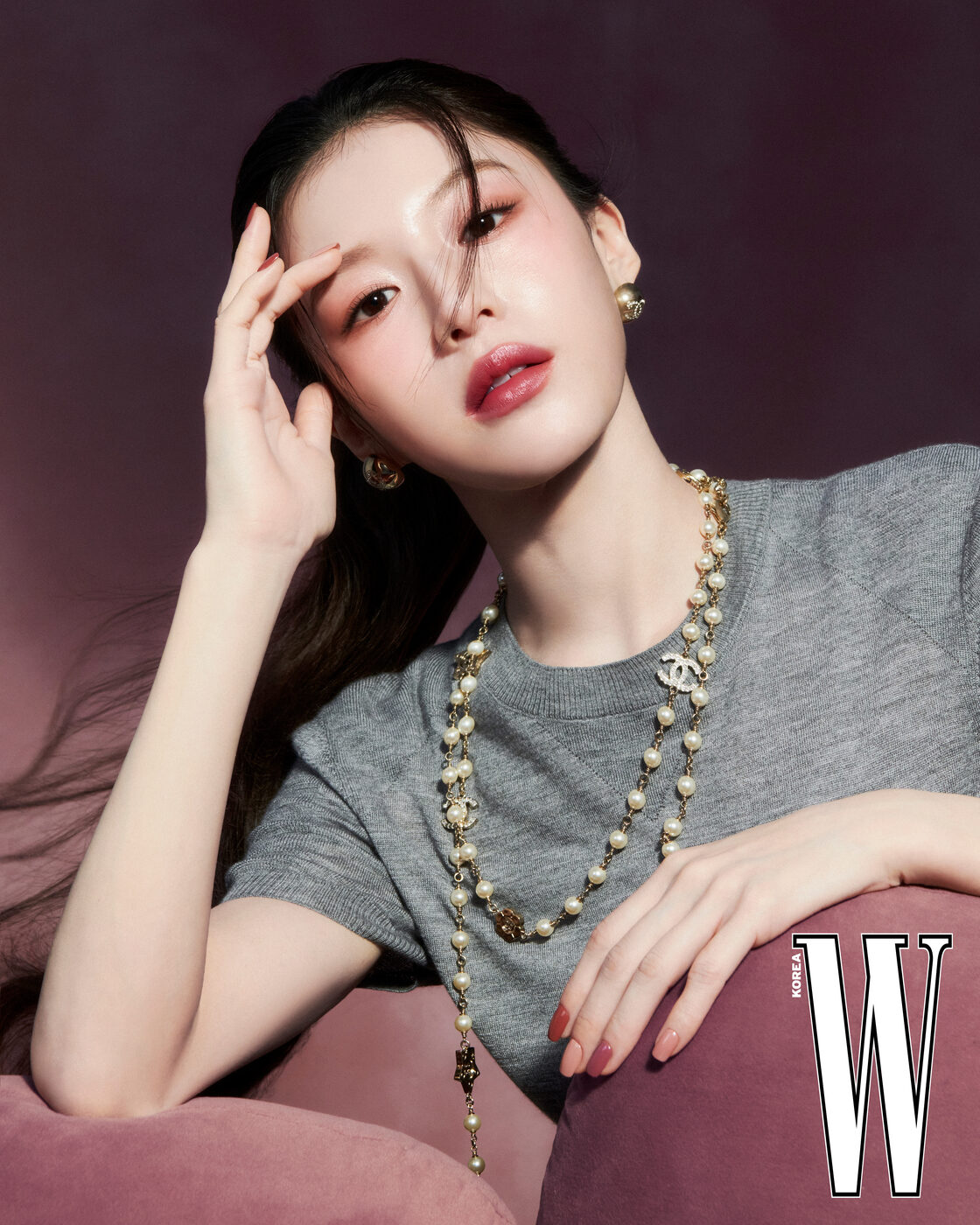 어떤 피부 톤에나 자연스럽게 어우러지는 모브 핑크 컬러 ‘루쥬 코코 립스틱(124 마리)’을 매끄럽게 바른 고윤정. ‘레 베쥬 아이섀도우 팔레트(텐더)’와 ‘쥬 꽁뜨라스뜨 블러셔(44 나르시스)’의 핑크, 바이올렛 컬러를 활용해 은은하게 톤다운된 봄 메이크업을 완성했다.