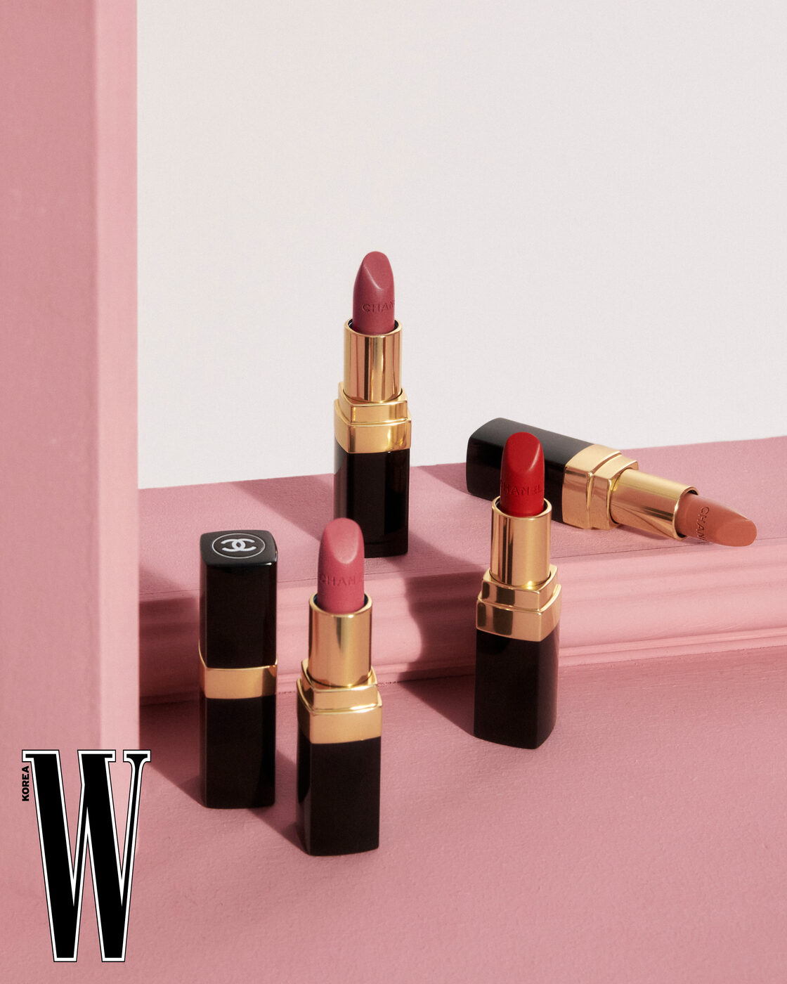 (왼쪽부터) Chanel 루쥬 코코 립스틱 (106 도빌, 124 마리, 130 라 파우자, 118 뉴욕) 각 3.5g, 6만원.