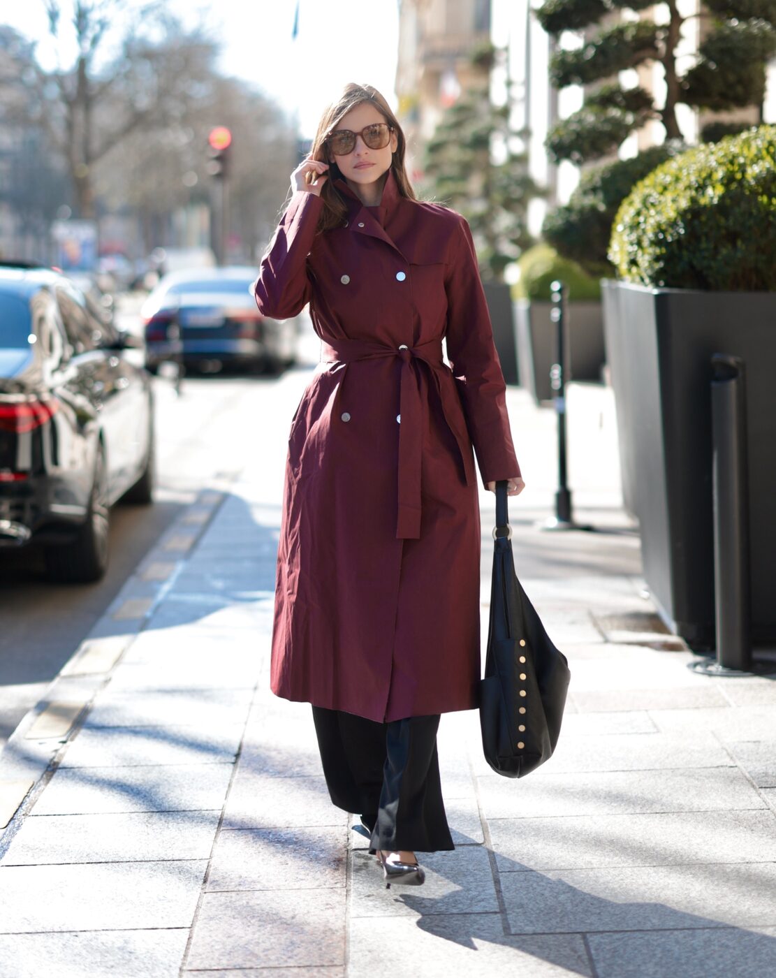 올 봄엔 트렌치 코트와 빅 백! 이 둘의 조합을 꼭 기억해야겠습니다. 로지 헌팅턴 휘틀리에 이어 바바라 팔빈도 트렌치 코트를 입고 파리 거리에 나섰거든요. 그녀의 손에 들린 백은 미국 백 브랜드 햄밋(Hammitt)의 제품. 부드럽게 떨어지는 실루엣에 양쪽에 스터드 장식이 포인트인 백입니다.