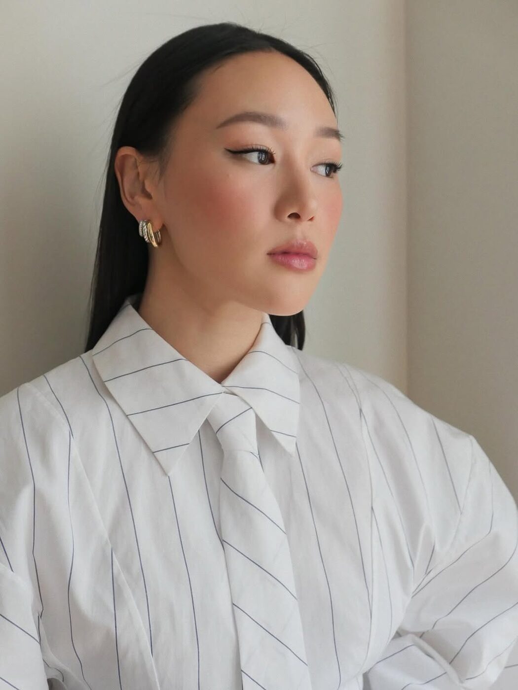 피부 톤을 어둡게 연출했다고 해서 진한 메이크업만 잘 어울릴 거라 생각했다면 오산! 미야오 가원처럼 깨끗하고 담백한 ‘클린 걸’ 이미지의 메이크업도 충분히 잘 어울립니다. 이 세 가지만 기억하세요. 베이스는 얇게 밀착시키고, 색조 사용은 최소화할 것, 하이라이터는 콧대와 광대뼈 위, 눈 앞머리처럼 빛이 닿는 지점에만 더해 맑고 내추럴한 인상을 연출하는 거예요.