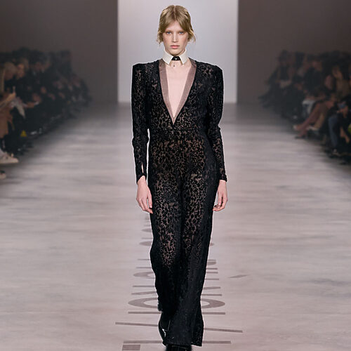 밀라노의 팔라초 산 페델레(Palazzo San Fedele)에 있는 보테가 베네타 본사에 붉은 카펫이 깔렸다. 루이스 트로터가 설계한 이번 26 FW 컬렉션은 하우스의 위대한 장인 정신을 현대적인 브루탈리즘(Brutalism)의 언어로 번역한 건축 설계도와 같았다. ‘브루탈리즘과 관능미 사이의 대화’라는 쇼 노트의 문구처럼 이번 무대는 딱딱한 구조물과 부드러운 관능미 사이를 오갔다.