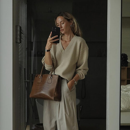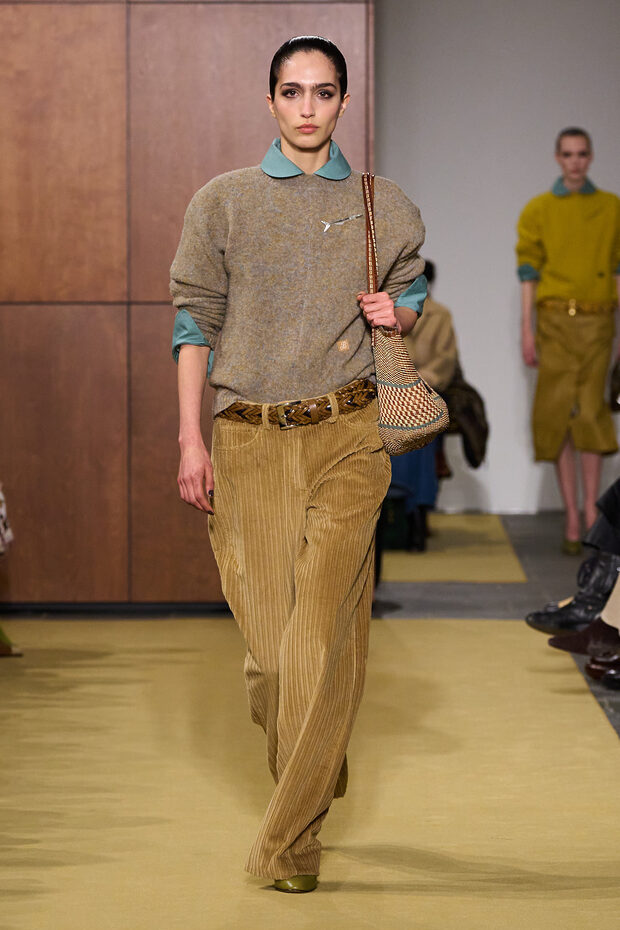 그럼에도 아직 니트와 셔츠의 색 조합이 고민된다면, 토리버치 2026 F/W 컬렉션을 참고해 보는 것을 추천해요. 옐로우나 베이지 톤으로 셔츠와 니트를 톤온톤으로 맞추면 우아하고 고급스러움을, 보색 대비를 이루는 톤앤톤으로 컬러군을 가져가면 트렌디하고 쿨한 멋을 연출할 수 있겠더군요. 그리고 셔츠 깃을 아주 빼꼼 내미는 정도로 꺼내 미니멀한 매력을 극대화해 보세요. 올해가 끝날 때까지 쭉 이어질 트렌드이니 미리 시도해 봐도 좋겠죠?