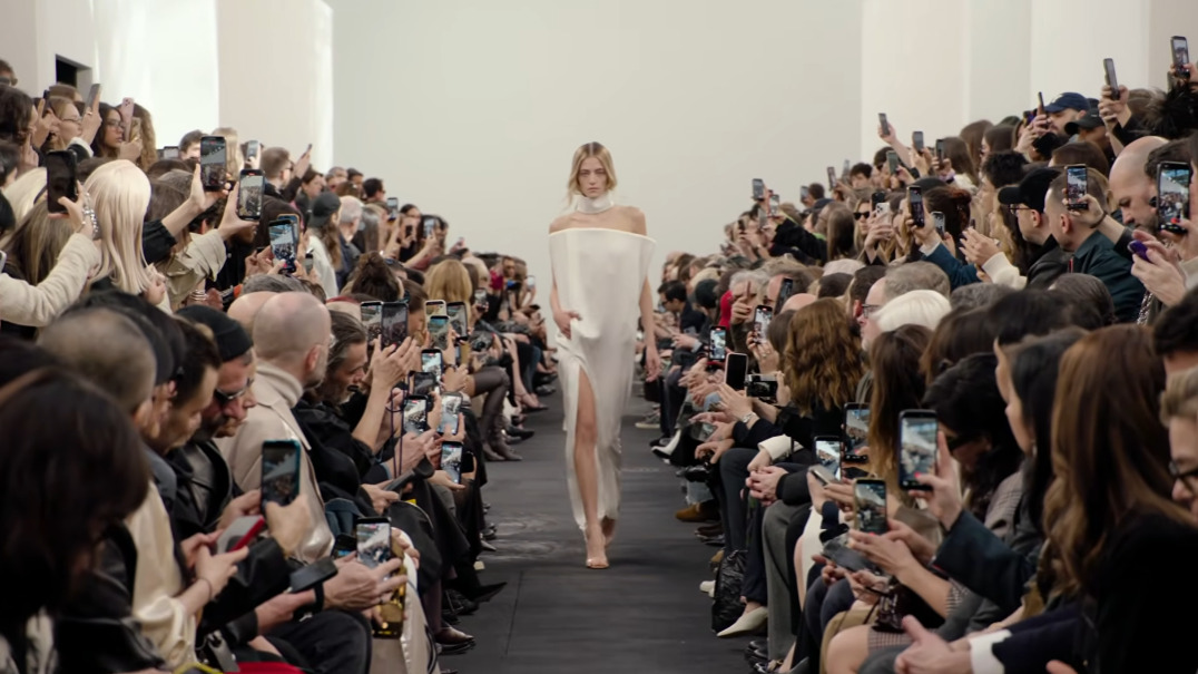 꾸레쥬 26 FW 컬렉션이 열린 파리 3구 카로 뒤 탕플(Le Carreau du Temple). 런웨이는 파리의 아스팔트 길처럼 꾸며졌다. 관객들은 마치 만원 지하철에 올라탄 듯 다닥다닥 붙어 앉아, 모델의 옷자락이 발끝에 닿을 거리에서 컬렉션을 감상했다. 니콜라 디 펠리체의 친구이자 작곡가인 에르왕 세네(Erwan Sène)가 재깍거리는 시계 소리, 문을 열고 닫을 때 나는 끼익 소리, 자동차 경고음 등 파리 거리에서 직접 채집한 실제 도시의 소음을 강렬한 비트로 만들었다. 생동감 넘치는 일상의 사운드와 함께 니콜라 디 펠리체가 만든 ‘꾸레쥬 우먼의 24시간(24 Hours in the Life of a Courrèges Woman)’의 이야기가 시작됐다. 모델이 등장하자 다닥다닥 붙어 앉은 관객들이 일제히 휴대폰을 들어 올려 촬영하는 장면은 그 자체로 하나의 현대미술 같았다.