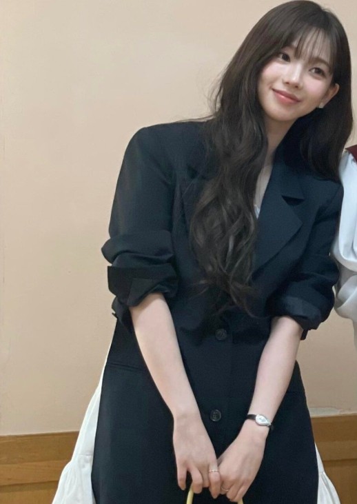 지난해 온라인 커뮤니티에서는 카리나가 친언니의 결혼식에서 하객을 맞이하는 모습이 공개되며 이른바 ‘카리나 하객 룩’이 화제가 됐습니다. 화이트 블라우스에 네이비 재킷을 매치한 단정한 스타일링은 격식을 갖추면서도 과하게 꾸민 느낌 없이 세련된 인상을 남겼죠. 무엇보다 눈길을 끈 것은 자연스럽게 흐르는 롱 웨이브 헤어였습니다. 부드러운 컬이 얼굴선을 따라 내려오며 전체적인 분위기를 한층 여성스럽게 완성했습니다.