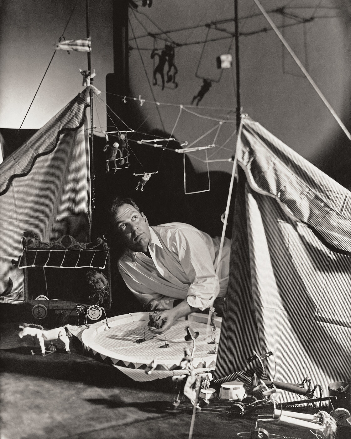 올해 3월까지 뉴욕 휘트니 미술관에서 진행하는 전시 <하이 와이어: 칼더의 서커스 100주년(High Wire: Calder’s Circus at 100)>은 파리에서 막 자리를 잡으려 애쓰던 젊은 예술가 시절의 칼더를 조명한다. 영상 자료를 비롯해 스케치, 손으로 인쇄한 초대장, 서커스 세계 전반에 대한 그의 폭넓은 관심을 보여주는 각종 아카이브 자료가 함께 전시된다. “관객들이 이러한 자료들 사이에 존재하는 연결고리를 스스로 발견하도록 돕고 싶었어요. 칼더의 서커스를 단순한 놀이가 아니라, 급진적인 퍼포먼스 아트로 제대로 자리매김하고 싶었죠. 1920년대에는 퍼포먼스가 현대미술의 한 장르로 인식되지 않았지만, 칼더는 이미 동시대 예술가들과 미술계 사람들을 위해 이런 작업을 시도했죠.” 이번 전시의 공동 큐레이터인 제닌 골드스타인의 설명이다.