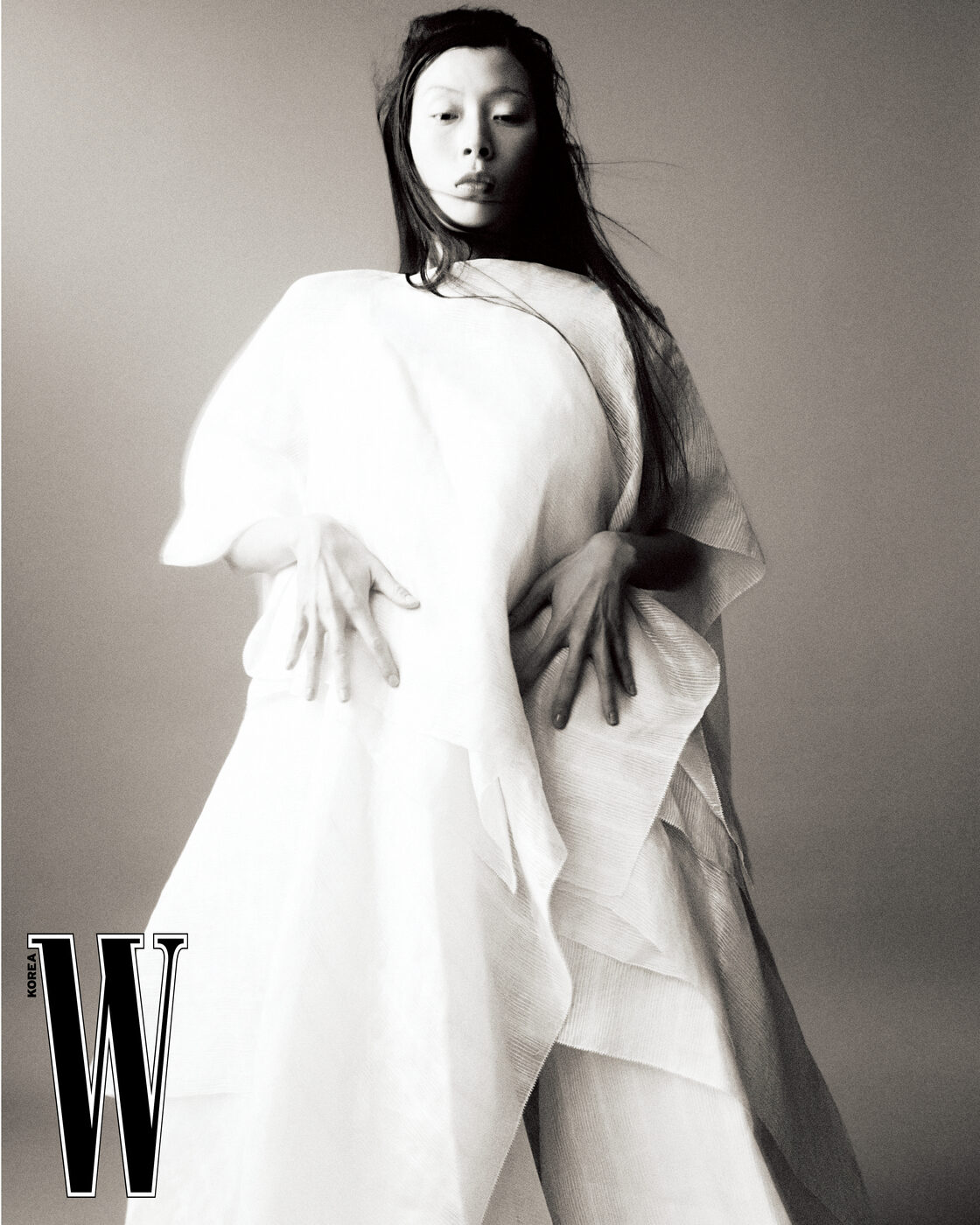 겹겹이 쌓인 레이어링 디테일이 특징인 드레스는 잉크 제품.