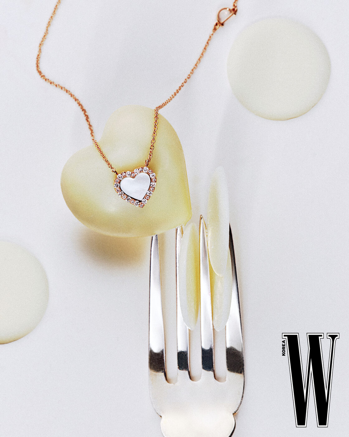 핑크 골드에 마더오브펄과 다이아몬드를 세팅한 벨 에포크 네크리스는 Damiani 제품.