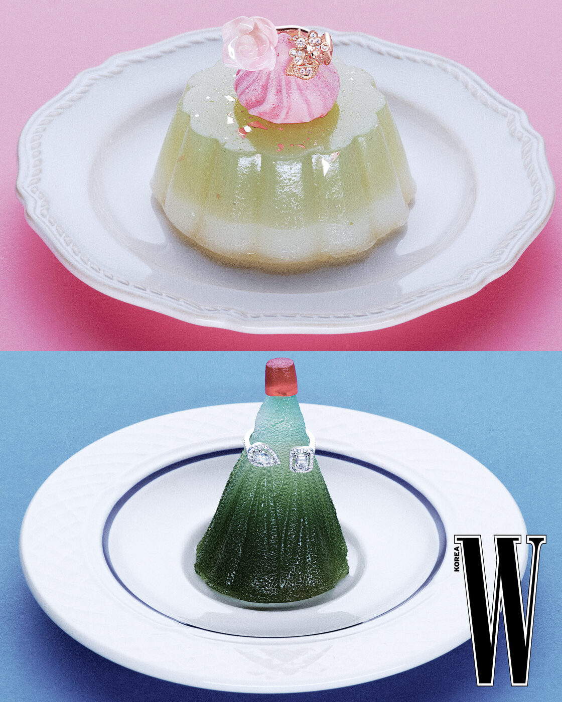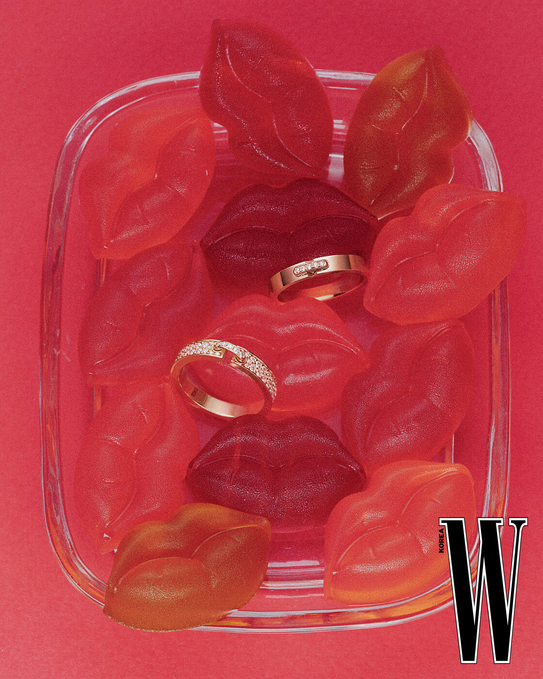 위부터 | 핑크 골드에 다이아몬드와 핑크 쿼츠를 세팅한 로즈 디올 프리 카텔란 링은 Dior Joaillerie 제품. 화이트 골드에 다이아몬드를 세팅한 마이 트윈 뚜아 에 무아 링은 Messika 제품.