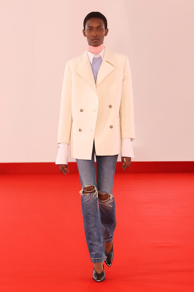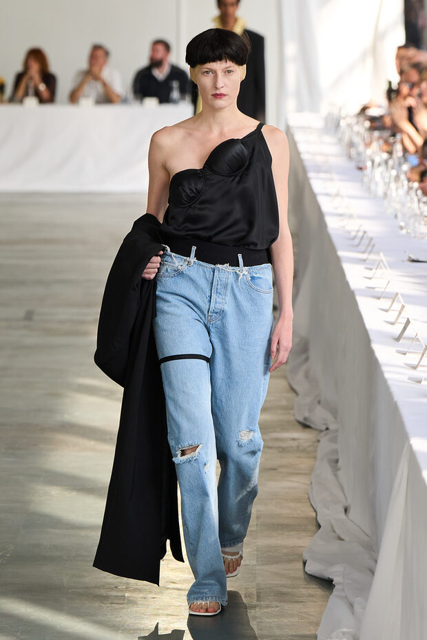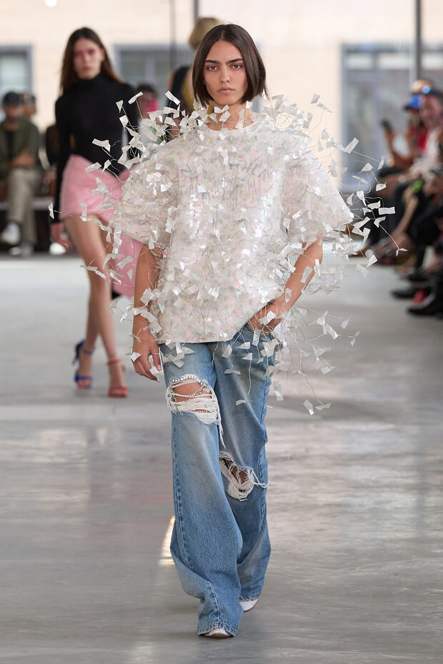 단지 2000년대 패션 아이콘들만 다시 이 찢청의 매력을 소환한 건 아니에요. 2026년 봄, 여름 컬렉션에서 하이엔드 디자이너들 또한 런웨이 위에 이 디스트로이드진을 내세웠어요. 미국의 실용주의적 패션의 선두주자인 브랜든 맥스웰은 스키니 진에 과감한 구멍을 내고 위에는 얌전한 니트와 셔츠, 블레이저의 레이어링을 선보이며 조용하고도 반항적인 룩을 완성했죠. 아크네에서는 반항기 가득한 그런지 무드의 니트와 찢어진 청바지를, 알레인폴과 아레아는 배기 핏의 데님에 아방가르드한 톱을 매치해 하이 엔드 무드를 한껏 끌여 올렸습니다.