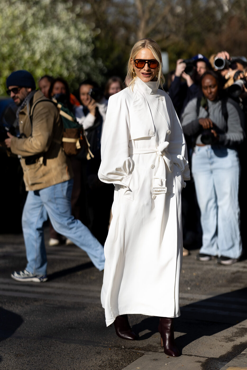 새하얀 트렌치코트는 베이지 컬러와는 또 다른 분위기를 선사합니다. 깨끗하고 정갈한 인상 덕분에 룩 전체가 한층 세련돼 보이죠. 여기에 부츠를 더하면 담백하면서도 쿨한 봄 스타일링을 완성할 수 있습니다. 화이트 특유의 산뜻한 컬러 덕분에 봄 시즌에 특히 잘 어울리는 선택!