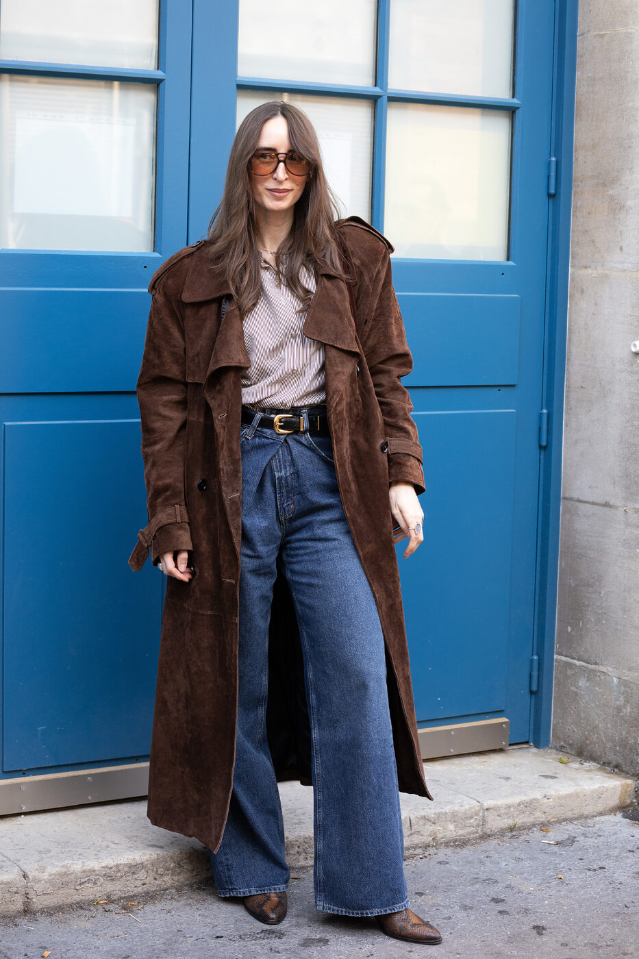 늦겨울에서 초봄으로 넘어가는 계절, 스웨이드 소재만큼 제격인 아이템도 없습니다. 스웨이드 트렌치코트는 특유의 탄탄한 질감 덕분에 실루엣을 또렷하게 잡아주며 한층 멋스러운 분위기를 연출하죠. 어깨선을 따라 내려오는 견장 장식이 돋보이는 트렌치코트에 데님을 매치해 쿨하면서도 세련된 봄 스타일을 완성해보세요. 여기에 부츠나 빅 백을 더하면 한층 패셔너블한 룩이 됩니다.