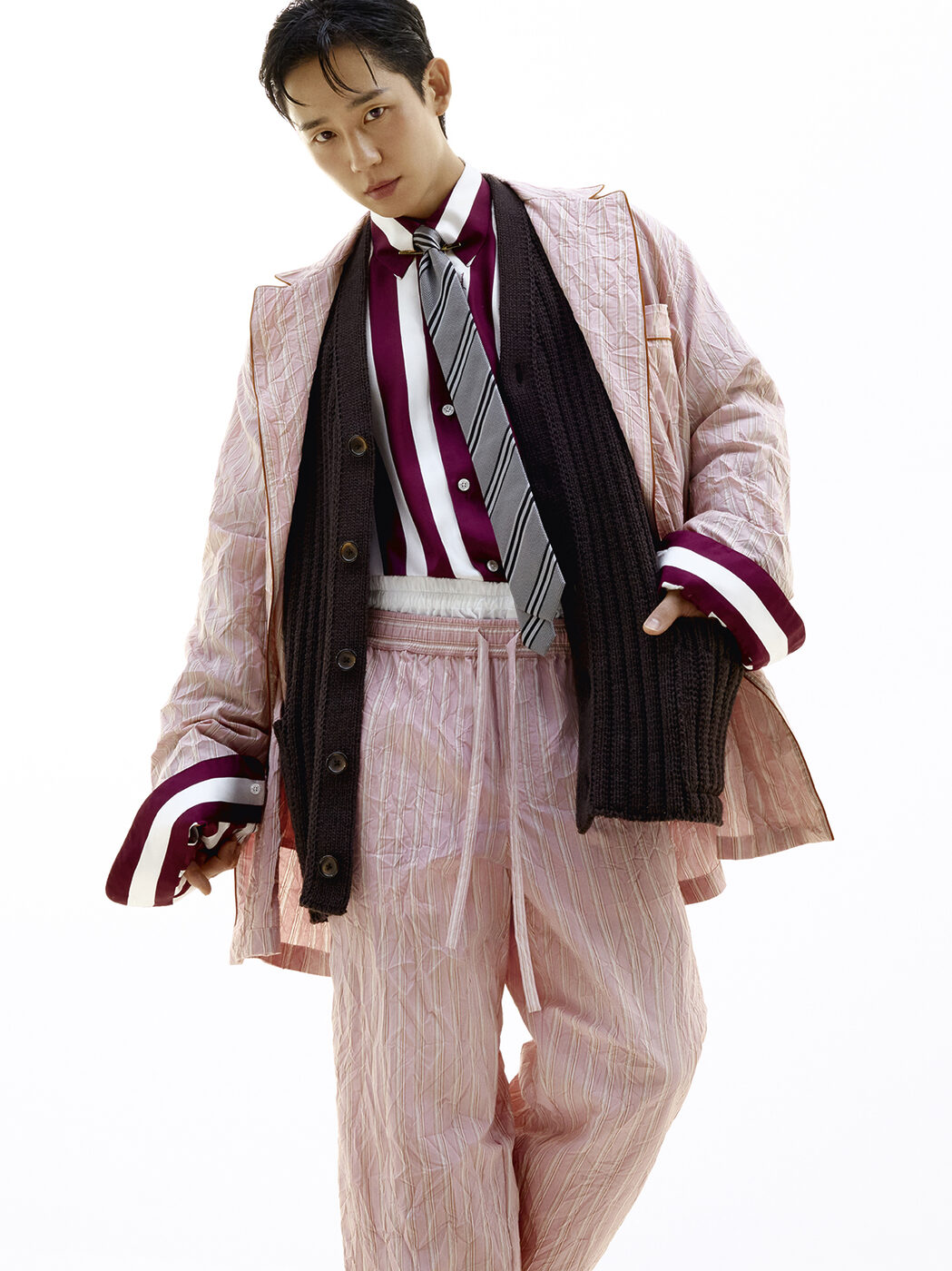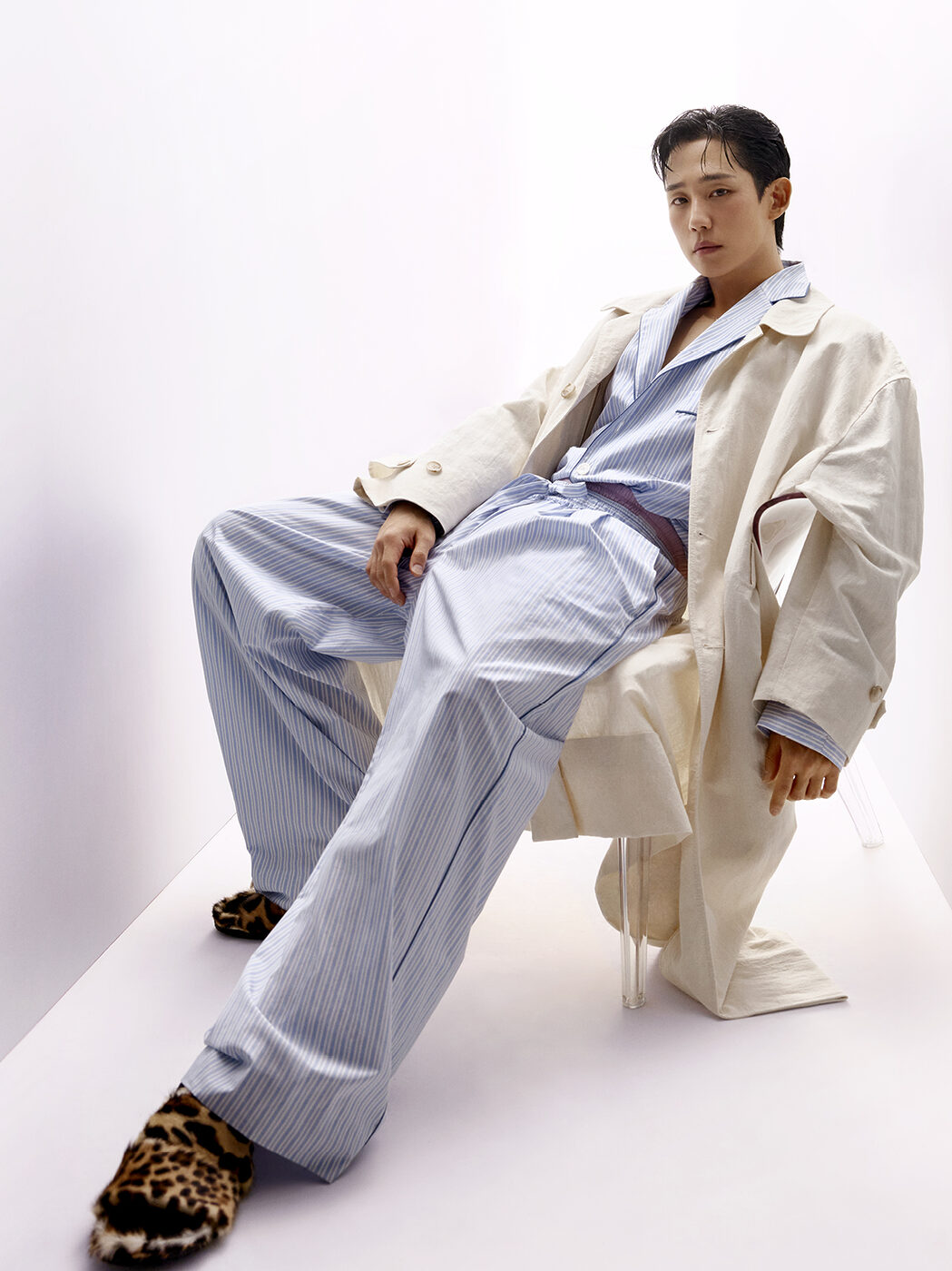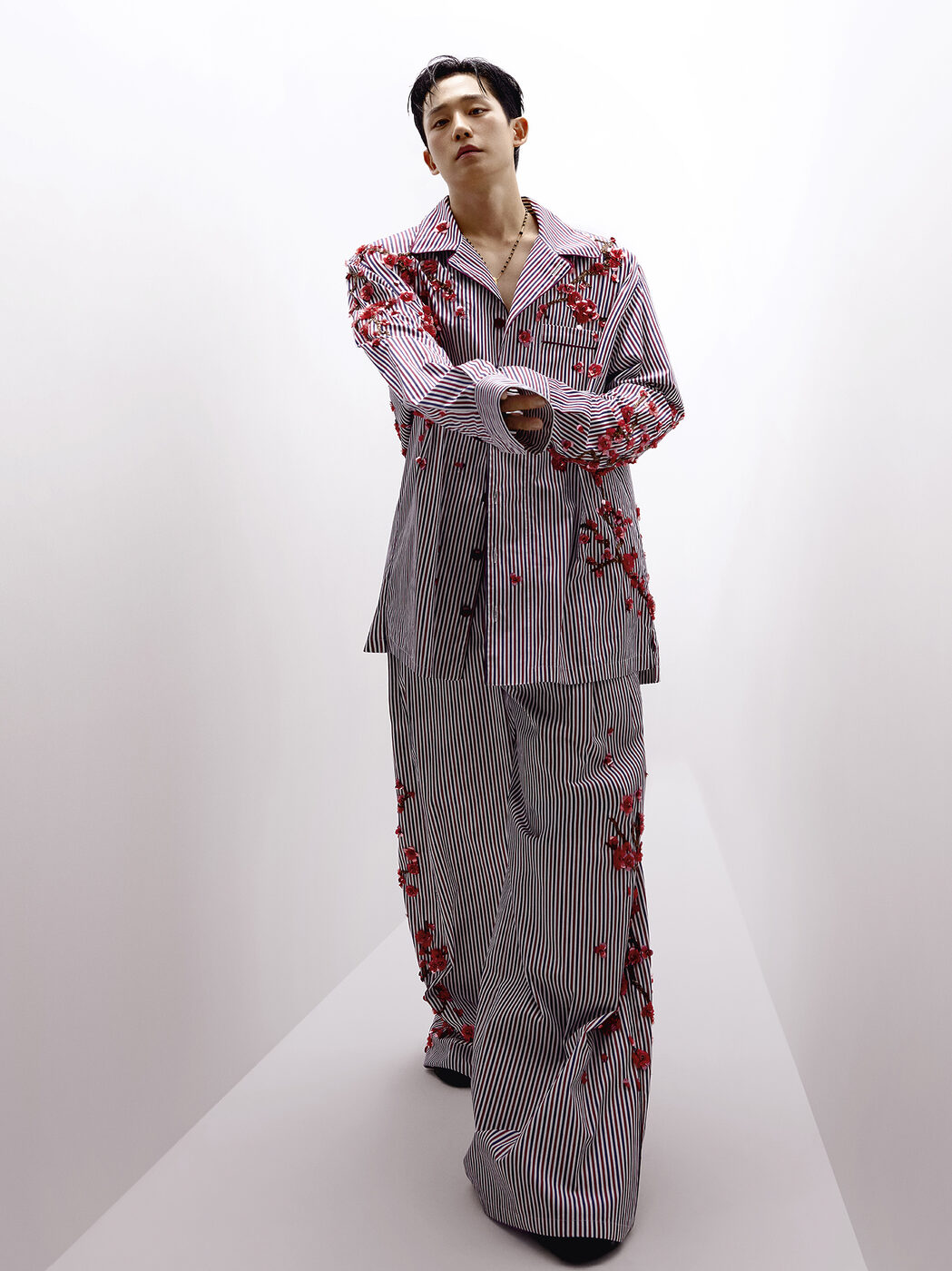정해인은 절제된 빛과 공간에서 고유의 카리스마를 드러낸다. 특히 파자마는 침실을 넘어 일상으로 확장된 캐주얼하면서도 도시적인 아이템으로 재해석되었는데, 세련된 우아함으로 현대적인 라이프스타일에 어울리는 스타일을 제안한다.