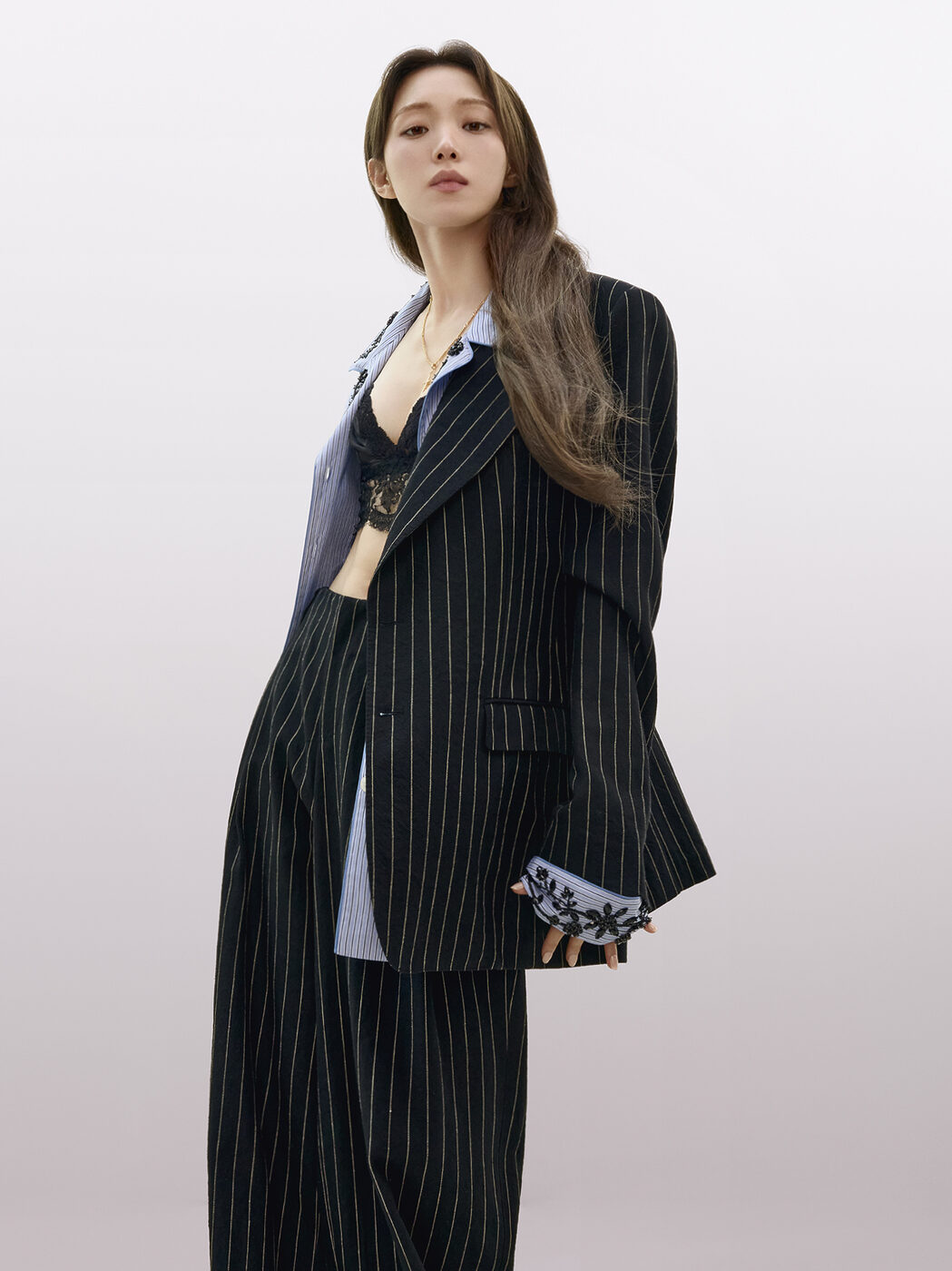 시간이 멈춘 듯 고요하고 세련된 공간에서 이성경은 여유로운 태도와 자신감으로 로맨틱하면서도 센슈얼한 매력을 드러낸다. 다양한 아이템이 어우러진 스타일은 여성성과 남성성의 경계를 넘나들며 낮과 밤 모두에 어울리는 분위기를 보여준다.
