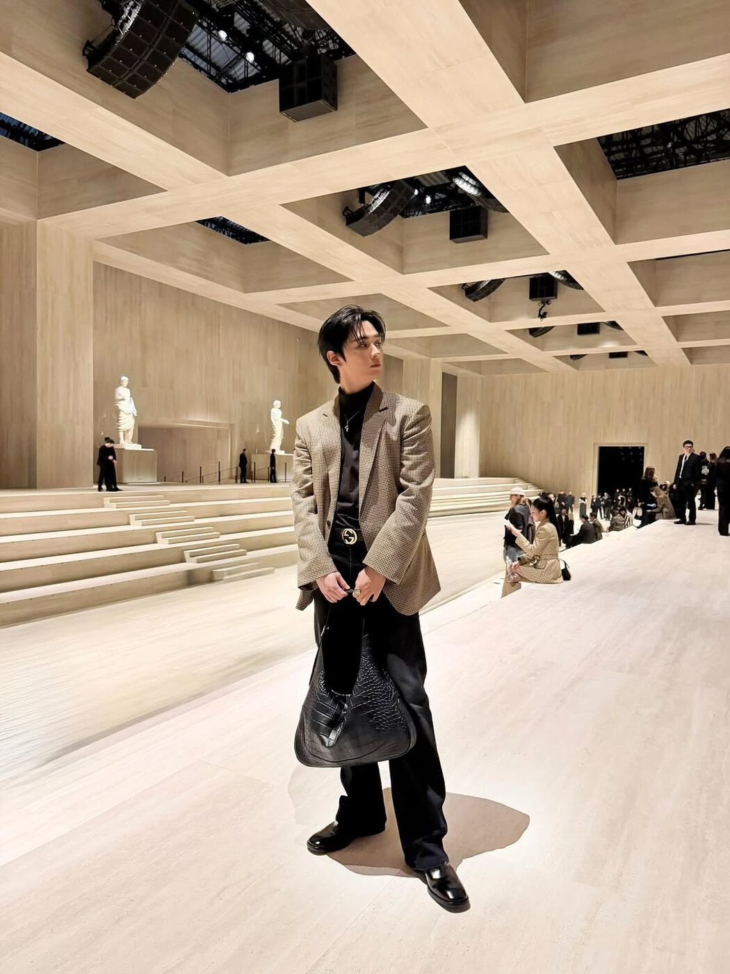 런던, 밀란, 파리! 스트레이 키즈 멤버들은 이번 시즌 3개 도시를 모두 접수했습니다. 구찌 쇼엔 리노가 참석했죠. 브라운 체크 패턴의 재킷에 그가 매치한 백은 바로 재키 백! 재키 백은 미국의 영부인 재클린 케네디의 사랑을 받아 원래의 이름이었던 ‘G1244’라는 이름까지 버리고 그녀의 이름에서 유래한 ‘재키’로 불리게 된 백입니다. 이를 뎀나 바잘리아가 현대적으로 재해석해 남자들도 들 수 있는 유연한 백으로 만들었고 리노가 이를 남다른 아우라로 소화해냈죠.