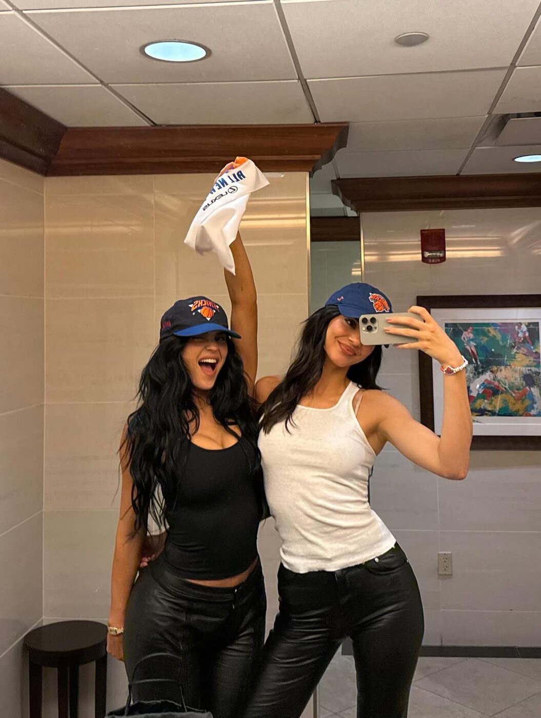 NBA 경기장을 방문한 카일리와 켄달 자매가 뉴욕 닉스 팀의 모자를 쓰고 함께 찍은 셀피는 그야말로 핫 걸 무드를 제대로 보여줬었죠. 화이트 탱크 톱에 스키니한 레더 팬츠를 매치하고 심플한 후프 이어링과 브레이슬릿만 더해 간결하게 완성한 아웃핏이었습니다. 군더더기 없는 스타일링으로 모델들의 오디션 룩에서 유래한 ‘고씨(go-see) 아웃핏’을 그녀만의 방식으로 풀어낸 것!