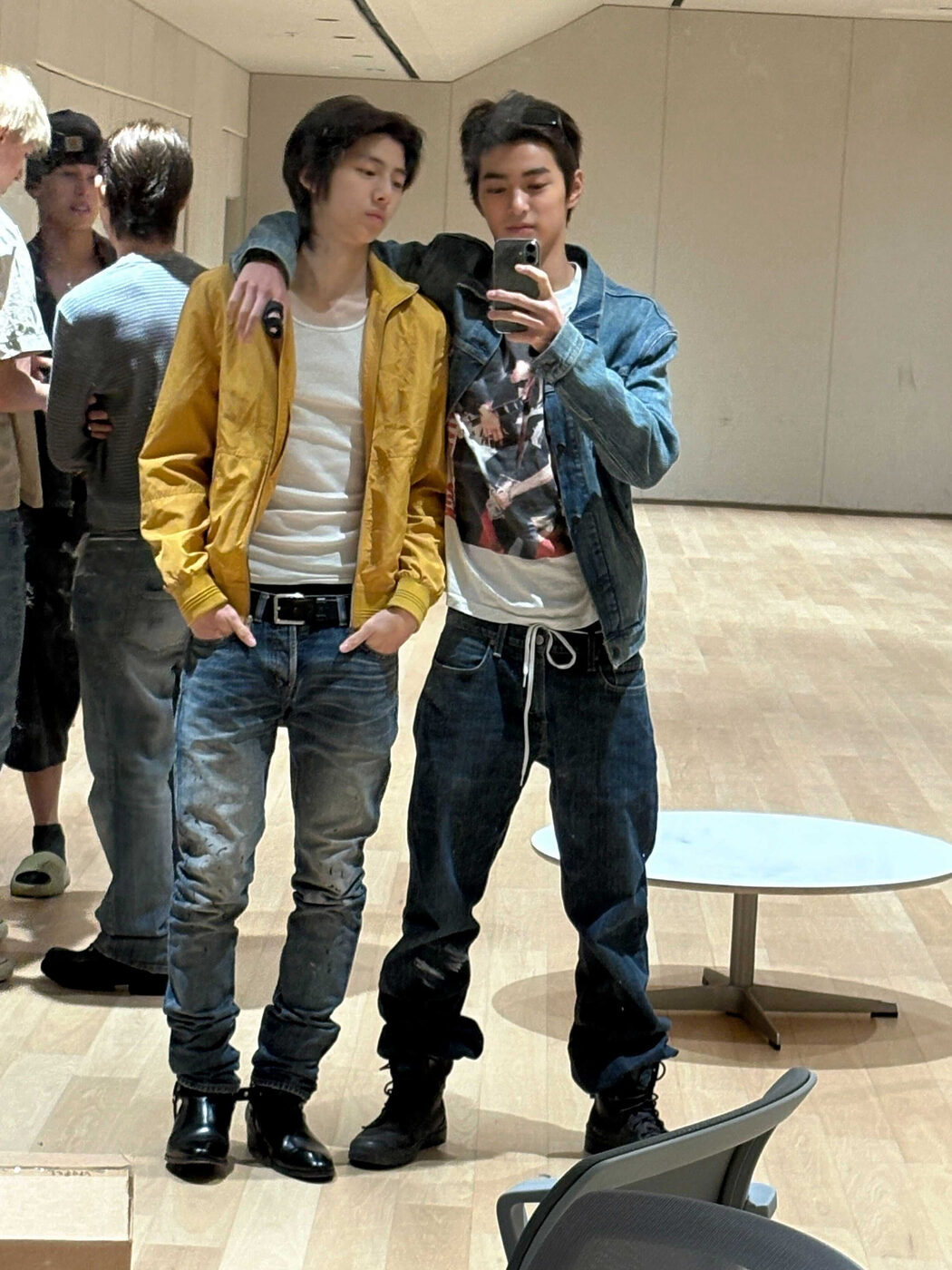인디 슬리즈 무드를 즐기는 코르티스 주훈의 스타일에는 한 가지 분명한 공식이 있습니다. 바로 아우터 안에 반드시 탱크 톱을 매치한다는 점이죠. 실제로 그는 이너로 항상 헤인즈 제품을 입는다고 밝힐 만큼 브랜드에 대한 애정을 드러낸 바 있는데요. 전체적인 스타일링 역시 슬림한 실루엣을 중심으로 전개됩니다. 남자 아이돌 사복에서 흔히 보이는 오버사이즈 아우터 대신 몸에 슬림 하게 떨어지는 빈티지 재킷을 선택해 단정하게 잠그기보다는 자연스럽게 오픈하고 탱크 톱을 드러냅니다. 덕분에 쇄골 라인이 강조되며 느슨하고 쿨한 분위기가 더해지는데요. 팬츠는 자연스럽게 주름이 잡힌 스키니 진을 선택하고 앞코가 날렵한 부츠로 마무리해 전체적인 실루엣을 길고 슬림하게 정리합니다. 요즘 다시 주목받는 인디 슬리즈의 매력을 보여주는 스타일이죠.