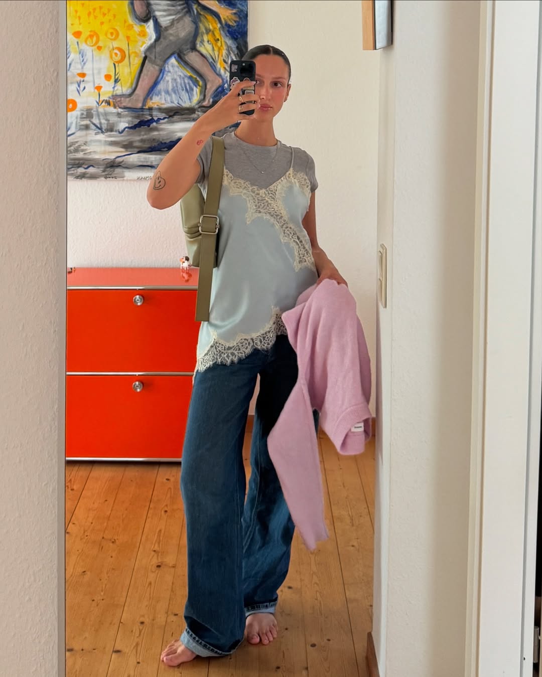부두아 스타일의 핵심은 섬세함과 여성스러움에 있어요. 레이스 트리밍이 장식된 슬립 캐미솔이나 은은한 광택의 새틴 드레스처럼 원래는 침실에서 입던 아이템들이 대표적이에요. 실루엣 역시 몸을 조이기보다는 자연스럽게 흐르는 형태가 많아요. 실크나 레이스 같은 가벼운 소재가 몸선을 따라 부드럽게 떨어지며 우아한 분위기를 만들어주죠.