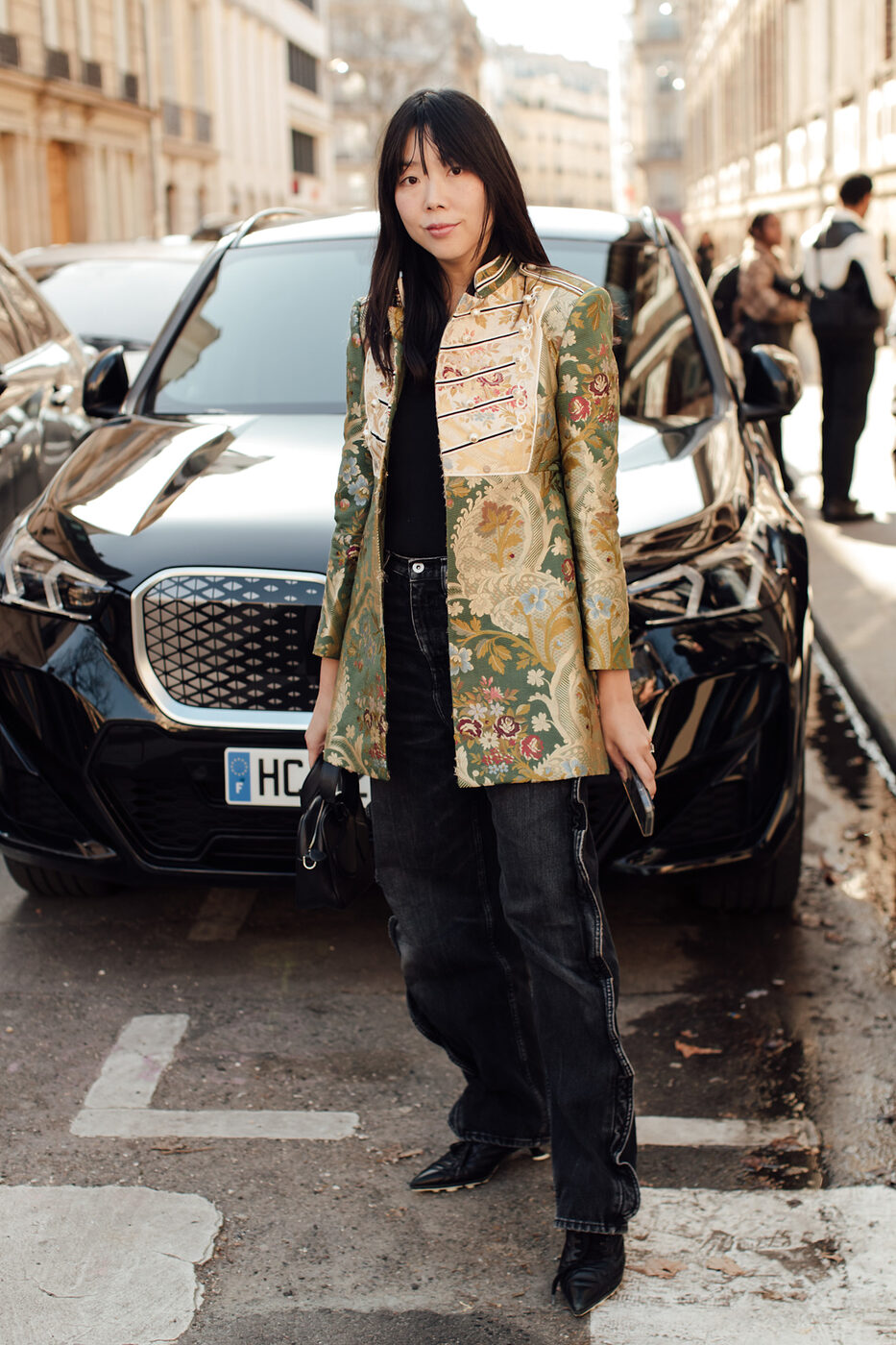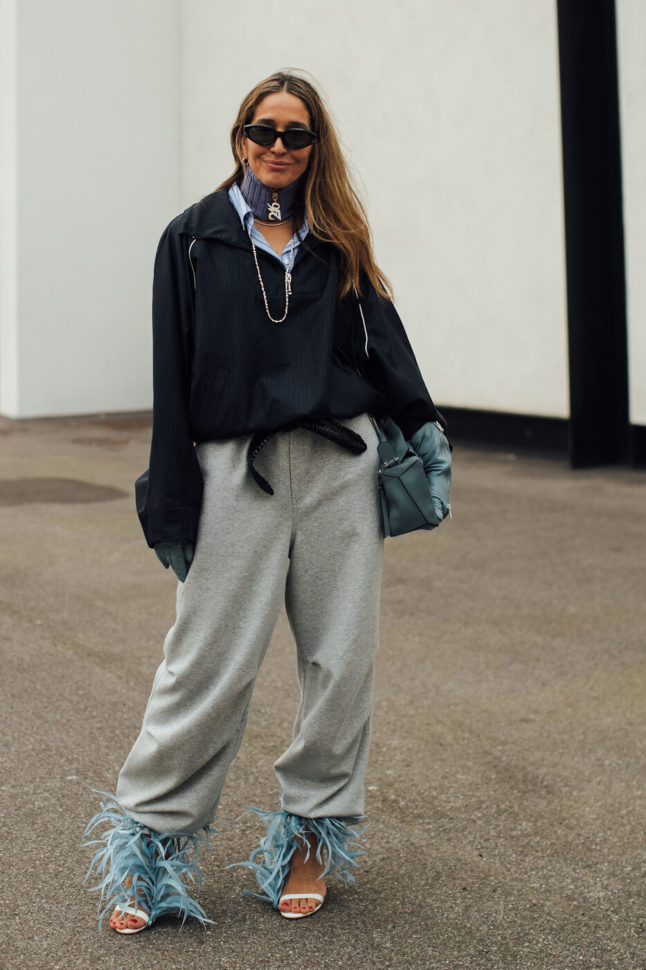 이질적인 모양새의 아이템을 마구 섞는 것도 좋지만 룩을 구성하는 소재나 디테일, 프린트, 실루엣 등을 다양하게 변주하는 것 역시 중요한 요소입니다. 예를 들어볼까요? 멋쟁이들이 모두 모인 패션위크 기간, 크리에이터 티아니 키릴로프는 자신의 캐릭터를 어필하기 위해 험블한 스웻 팬츠에 화려한 깃털 장식의 힐을 매치했습니다. 튈르리 정원의 꽃밭을 연상케하는 MSGM의 셋업에 투박한 가죽 봄버를 더한 칸델라 펠리자는 또 어떻고요.