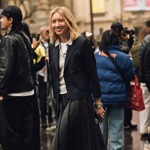 두툼한 터틀넥 니트에도 블랙 레이스 스커트를 매치해 보세요. 레이스의 여리여리한 조직감과 묵직한 니트의 질감이 대비를 이루면서 룩의 완성도도 높아보입니다. 이때 루즈한 오버사이즈 톱으로 믹스매치를 하기 보다는 의도적으로 드레스업한 느낌을 주는 것이 포인트. 크롭 톱처럼 상체의 비율을 끊어주는 아이템을 선택하면 레이스의 드레시하고 고혹적인 분위기가 제대로 살아나죠.