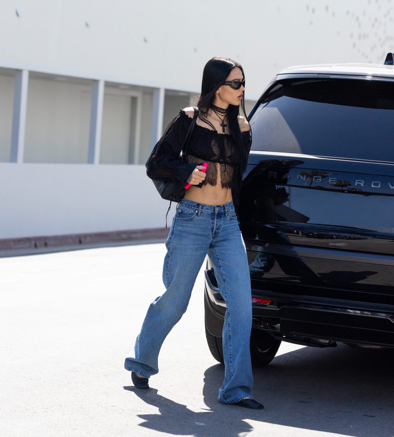지난 3월 17일 LA에서 포착된 아멜리아 그레이. 퇴폐적이고 고스한 취향을 집요하게 밀어붙이는 아멜리아답게 새카만 레이스 블라우스를 선택했습니다. 오프숄더 네크라인에 크롭 실루엣, 여기에 레이스 디테일이 로맨틱한 대비를 더했죠. 스트레이트 핏의 데님을 매치해 캐주얼하게 스타일링하고, 마무리로는 목선을 따라 타이트하게 감기는 빈티지 구찌의 십자가 펜던트 초커로 고딕적인 무드를 더했습니다.