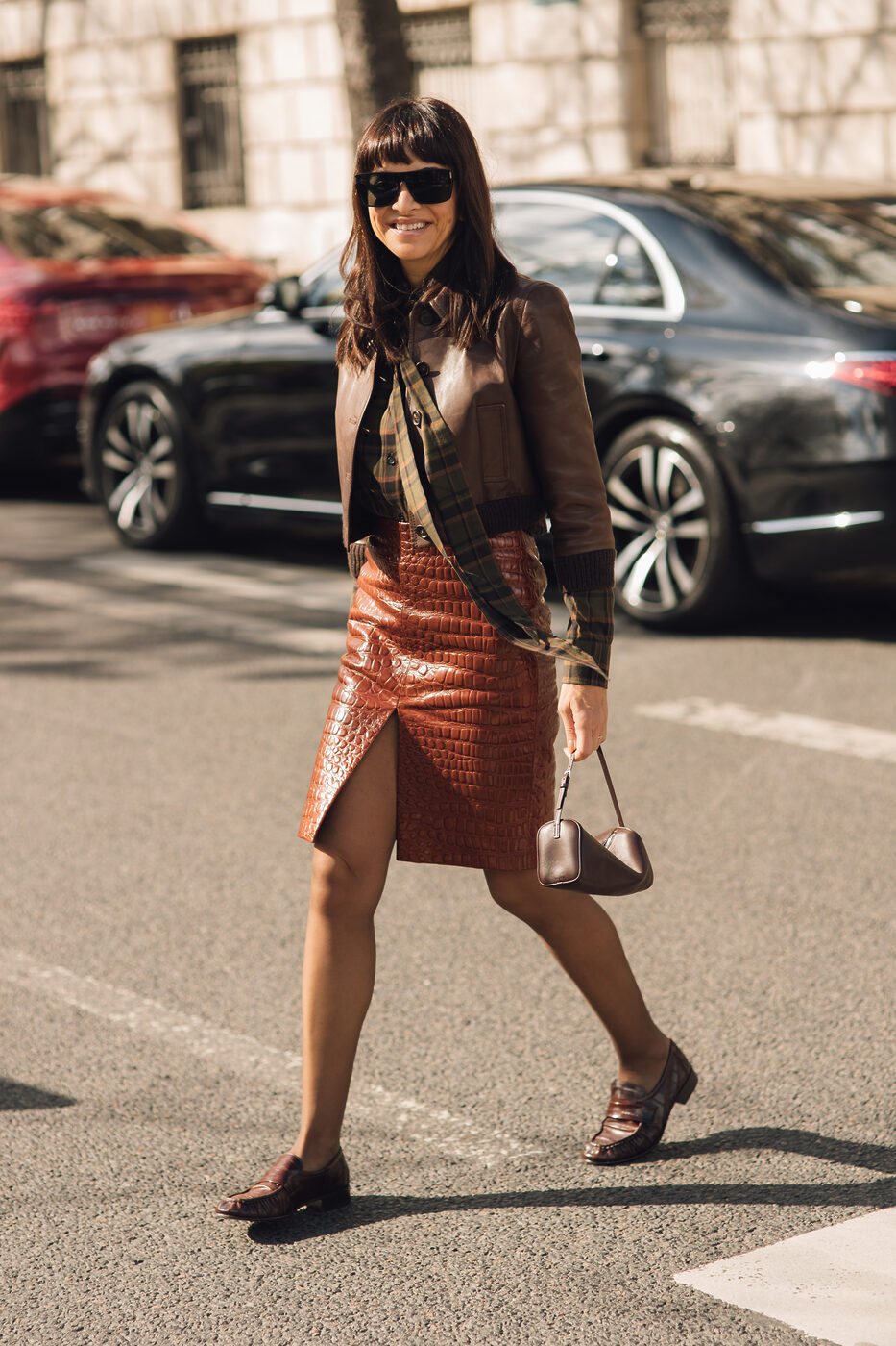 프로페셔널한 인상이 필요한 날, 과감한 레더 소재의 펜슬 스커트로 모던한 비즈니스 룩을 완성해 보세요. 자칫 과해 보일 수 있는 레더의 존재감을 체크 셔츠가 눌러주며 균형을 잡아줍니다. 여기에 슬릿 디테일이 더해진 디자인을 선택하면 소재 특유의 답답함을 덜어내고, 걸음마다 유연한 움직임까지 확보할 수 있죠.