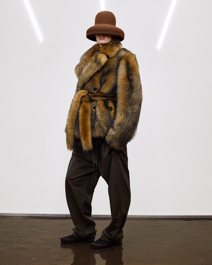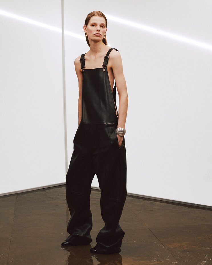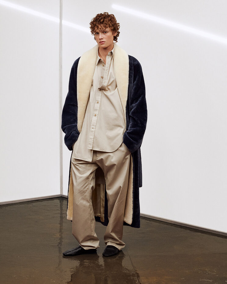 이어지는 두 번째 딜리버리는 9월, 다시 일상으로 돌아오는 복귀의 계절이다. 이 구간에서 컬렉션은 보다 밀도 높은 볼륨과 복합적인 색감을 획득한다. 가죽, 퍼, 글러브 소재는 프레스드, 다잉, 시어링, 실링, 핸드 스티칭 같은 공정을 거치며 한층 조형적인 존재감을 드러낸다. 시어링 레더 재킷과 더블 다이드 셔츠, 레더 오버롤과 빅 코트, 구조적인 백과 유연한 호보백까지—이 챕터는 실용성과 감각이 가장 세련되게 교차하는 지점이다.