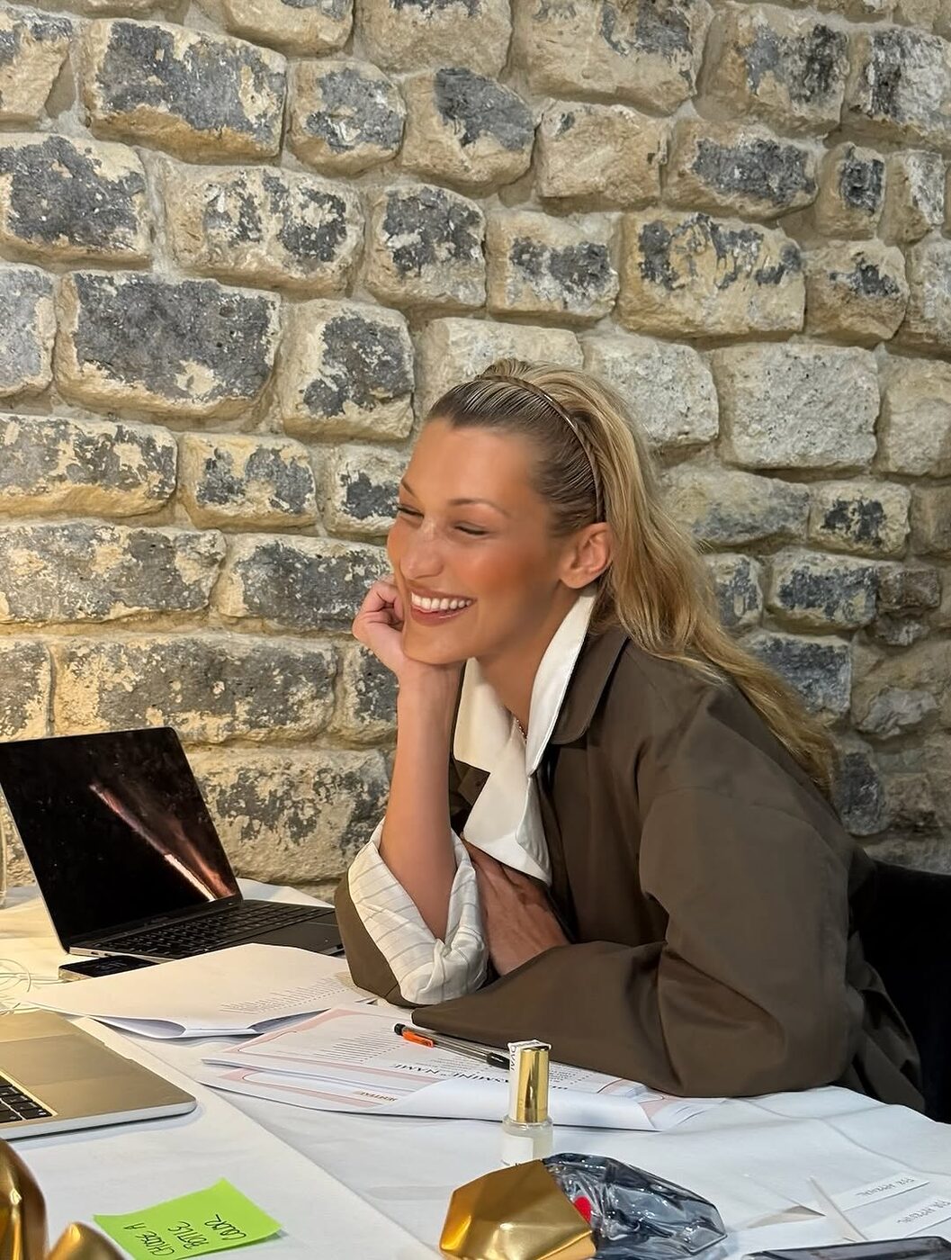 두께가 있는 머리띠가 헤어 라인을 답답하게 만들거나, 얼굴 윤곽을 과하게 부각시켜 부담스럽게 느껴진다면 벨라 하디드의 방식을 참고해 보세요. 가느다란 머리띠 하나만으로도 쿨한 분위기를 연출할 수 있습니다. 특히 얇은 머리띠는 정수리 쪽의 볼륨을 살려주기에도 제격이죠. 두상이 납작해 보일 걱정 없이 스타일리시한 분위기를 더할 수 있어요.
