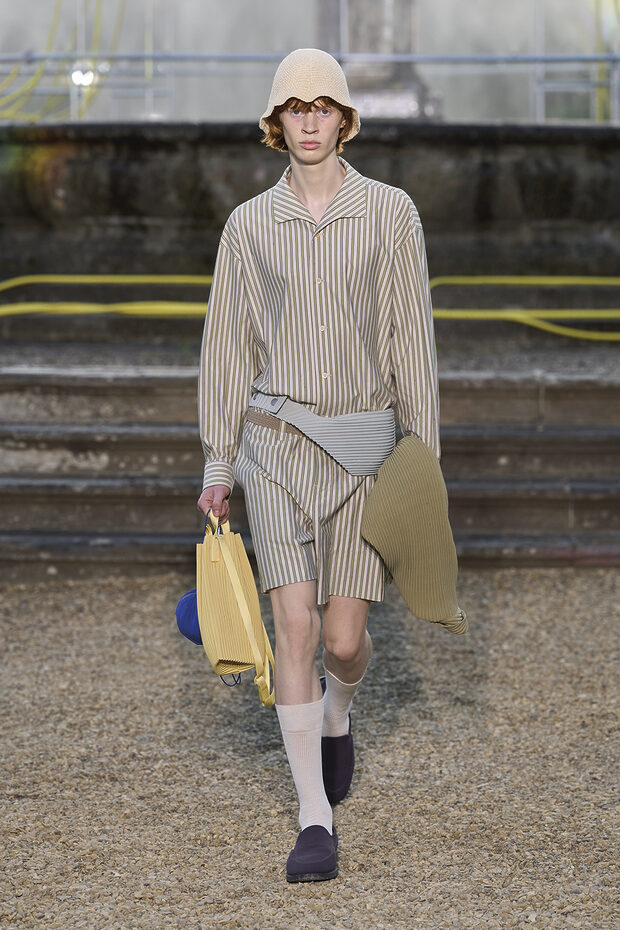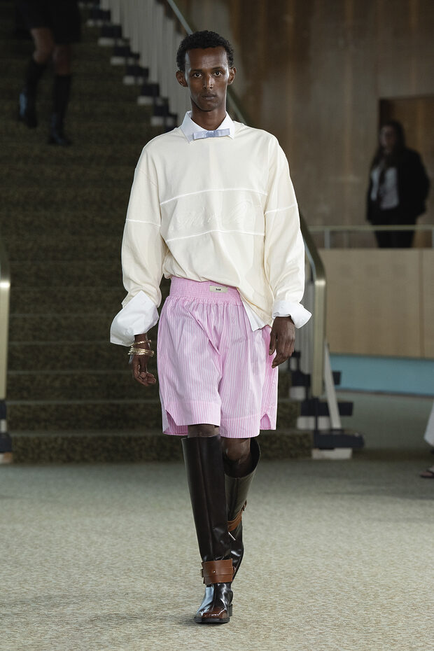 미우치아 프라다는 이번 시즌 각선미를 과감하게 드러내는 마이크로 쇼츠를 선보였다. 이에 발맞추듯 생 로랑, 아미, MM6 등 여러 브랜드에서도 반바지 스타일이 잇달아 등장했다. 여성 패션계에 미우미우의 마이크로 미니스커트 붐이 있었다면, 올해는 남성들이 마이크로 쇼츠에 시선을 돌릴 차례다.