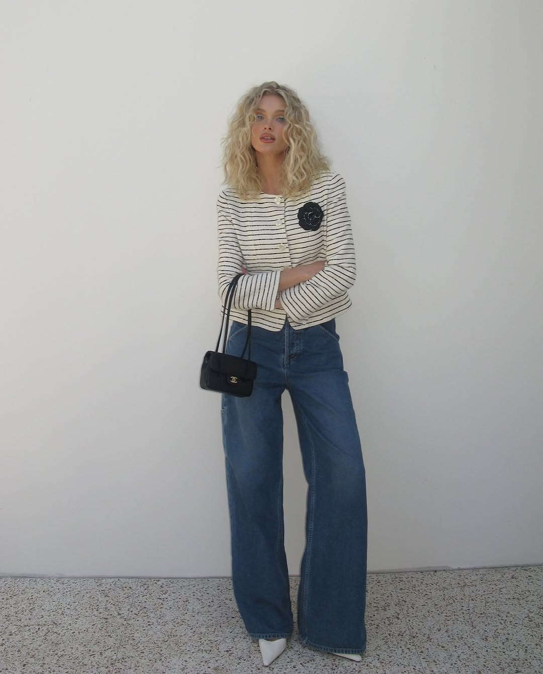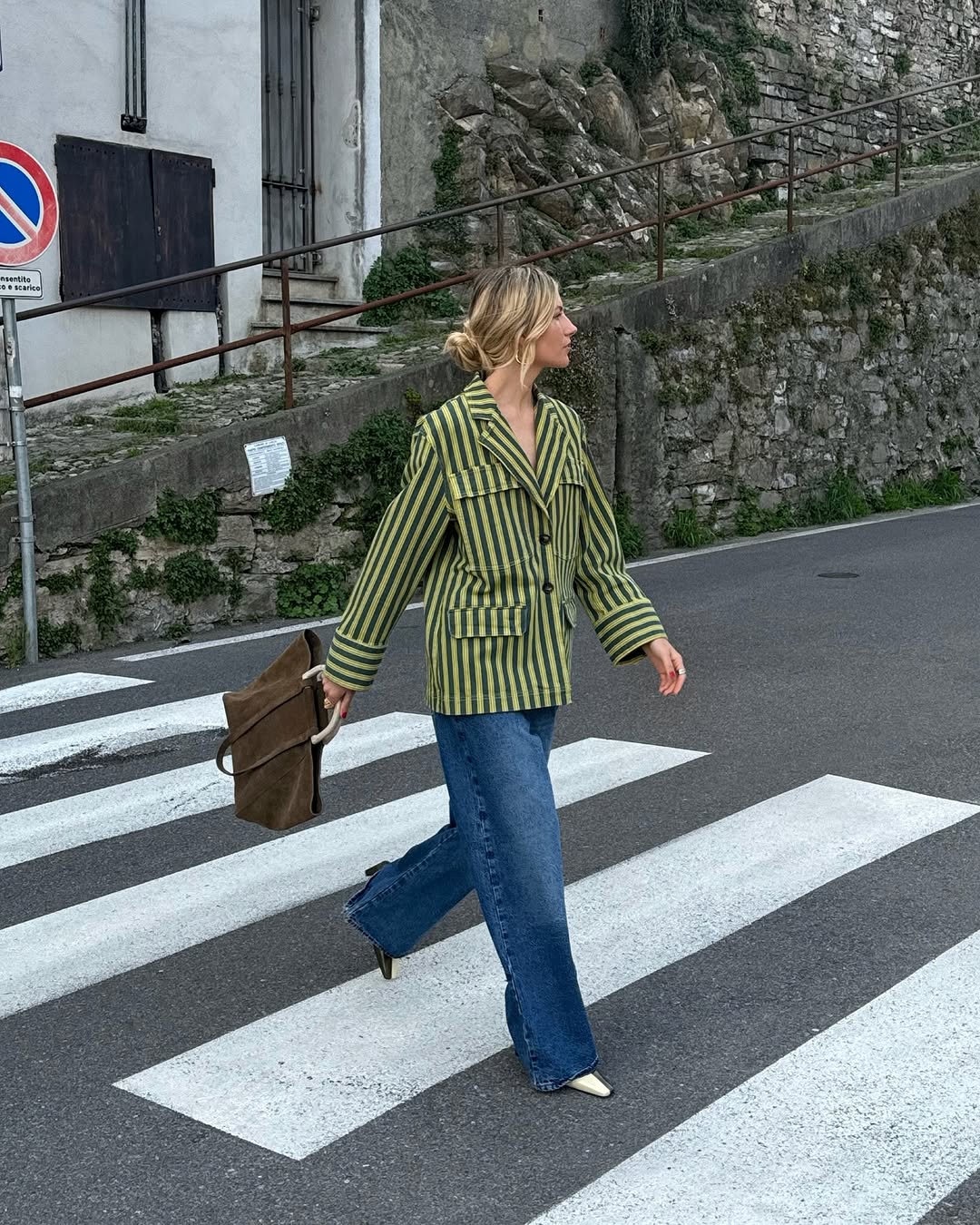 세로 스트라이프는 가로로 길게 퍼지는 스트라이프 패턴 보다 몸의 세로 비율을 강조해 훨씬 슬림해 보이는 효과를 줍니다. 동시에 스트라이프 특유의 캐주얼한 인상을 덜어내 우아하고 페미닌한 무드로 연출하기에도 제격이죠. 이 패턴의 장점을 살리려면 핏 선택이 중요합니다. 어설프게 떨어지는 라인은 세로선을 흐릴 수 있기 때문인데요. 허리를 살짝 잡아주는 실루엣이나 적당히 여유 있는 핏을 선택해 세로선을 또렷하게 살리는 것이 핵심이죠.