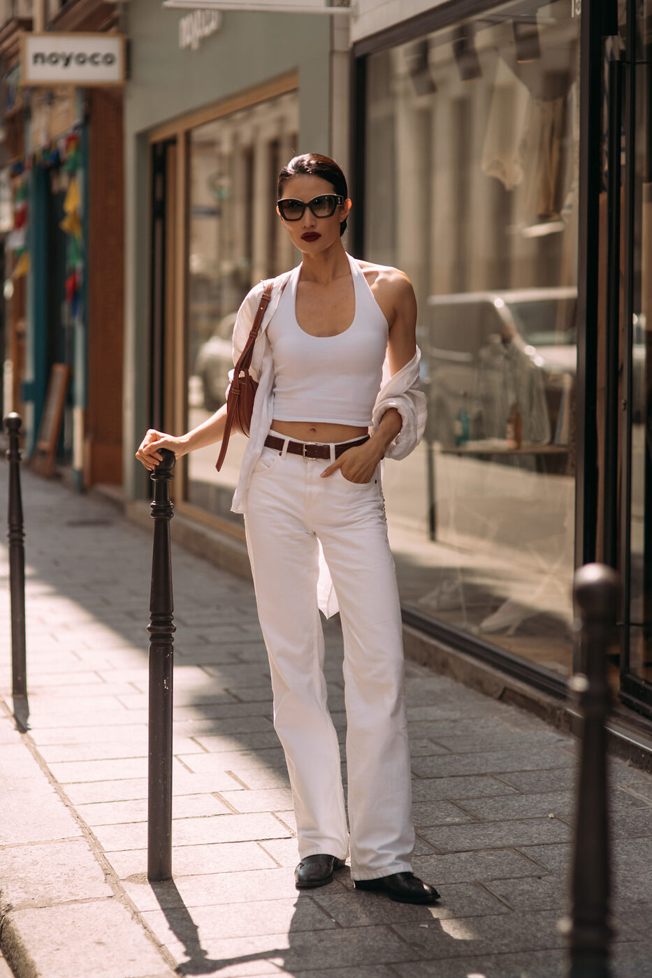 허리부터 무릎, 발끝까지 일자로 떨어지는 스트레이트 핏 화이트 데님 팬츠는 체형에 구애받지 않고 모두 잘 어울리는데, 특히 하체가 통통하거나 아담한 키를 가진 이들이 입기 좋은 아이템이에요. 허리 라인은 잡아주면서 힙과 허벅지는 살짝 여유있는 실루엣으로 고르는 것이 현명합니다. 발등을 살짝 덮는 길이의 화이트 데님 팬츠라면 날씬하면서 다리도 길어 보이게 만들어 즐 겁니다. 또한 정돈된 실루엣 덕분에 매치하는 아이템에 따라 캐주얼부터 포멀 룩까지 다양하게 표현할 수 있어 활용도가 높은 것이 특징으로, 가볍게 티셔츠 하나만 걸쳐도 쿨한 무드를 연출할 수 있답니다.