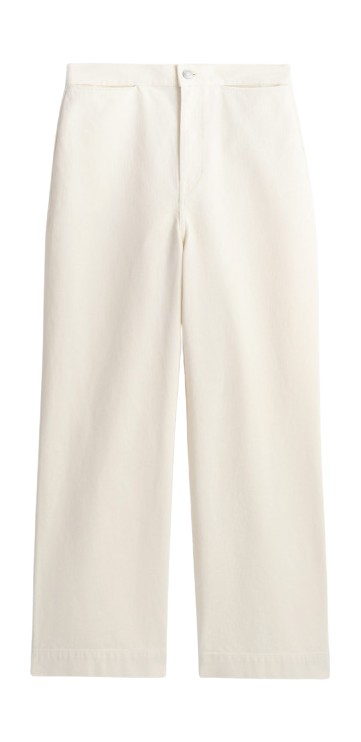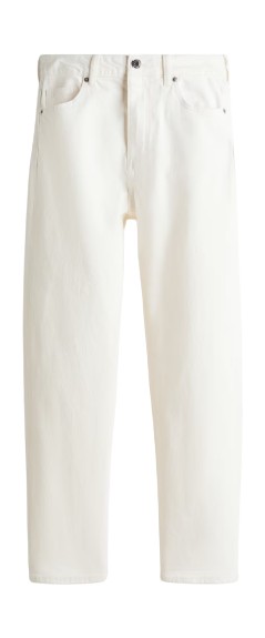 혹시 뚱뚱해 보일까 망설여진다면, 여유로운 폭과 신축성 적은 원단, 적당한 두께, 세 가지 조건에 부합하는 화이트 데님 팬츠를 선택해 보세요. 스트레이트 핏이나 와이드 실루엣 어떤 것을 선택해도 괜찮지만, 체지방이 없다시피 마른 것이 아닌 이상 부피가 팽창돼 보일 수 있으니 타이트 핏만은 피해야 한다는 것을 꼭 기억하세요.